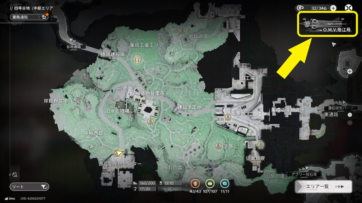 帝江号のマップが開いたら、協約転送ポイントを選んで移動しましょう。