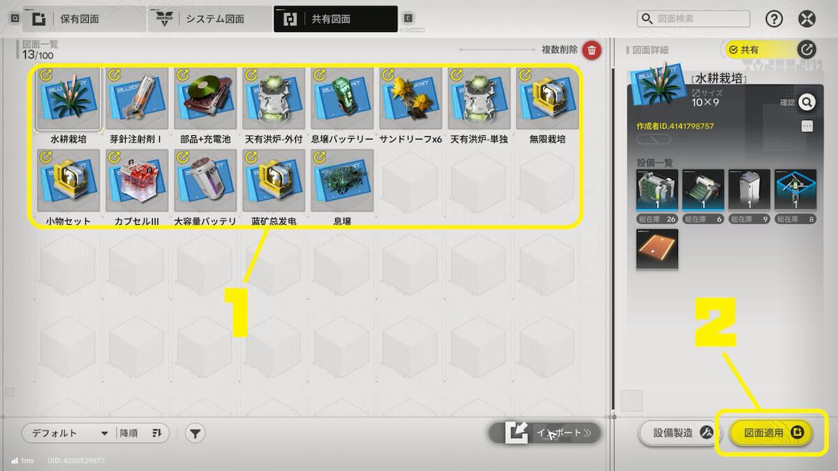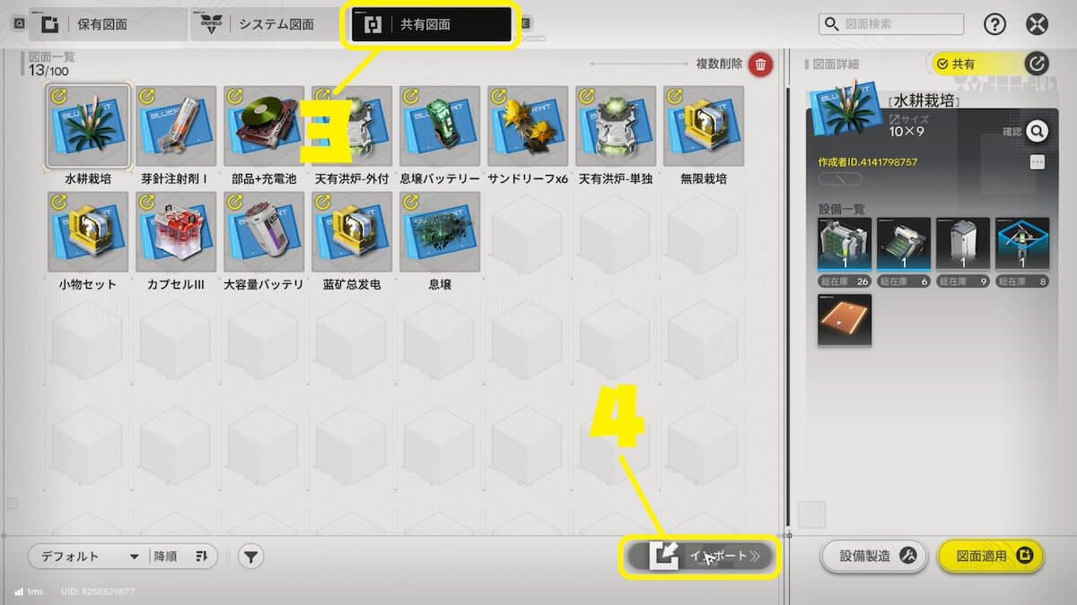 以上が【エンドフィールド】共有図面を登録する方法になります。