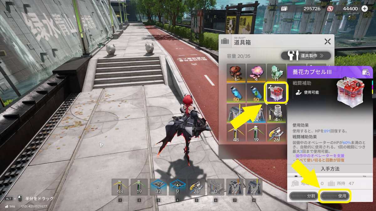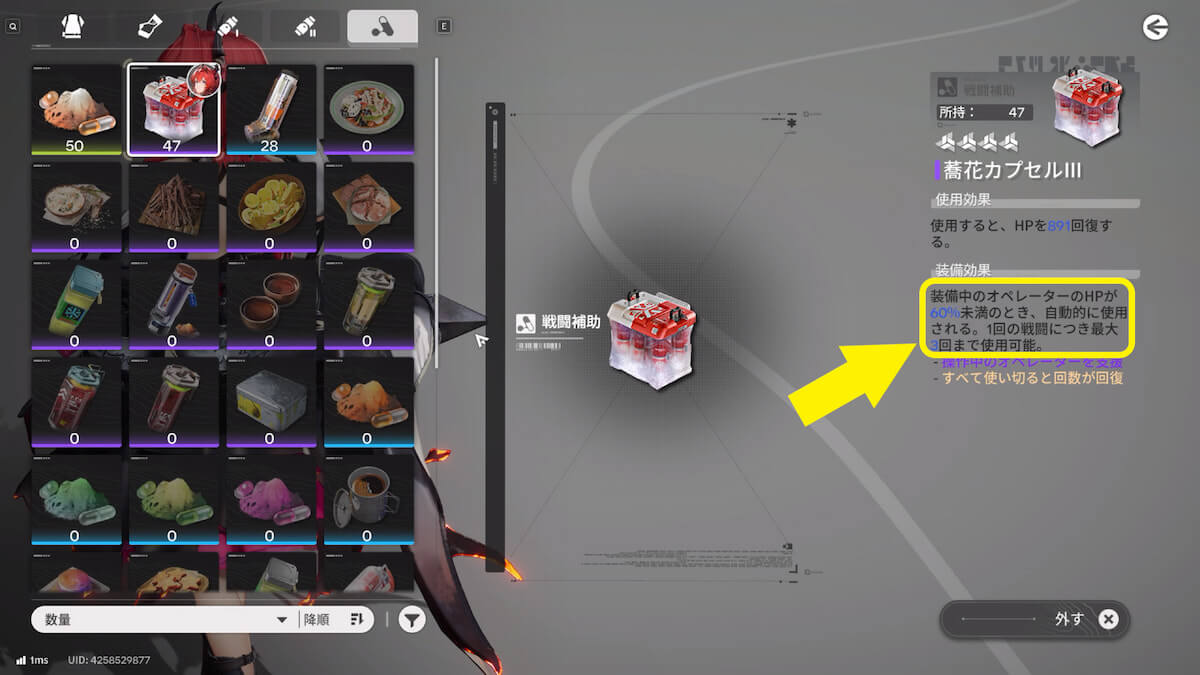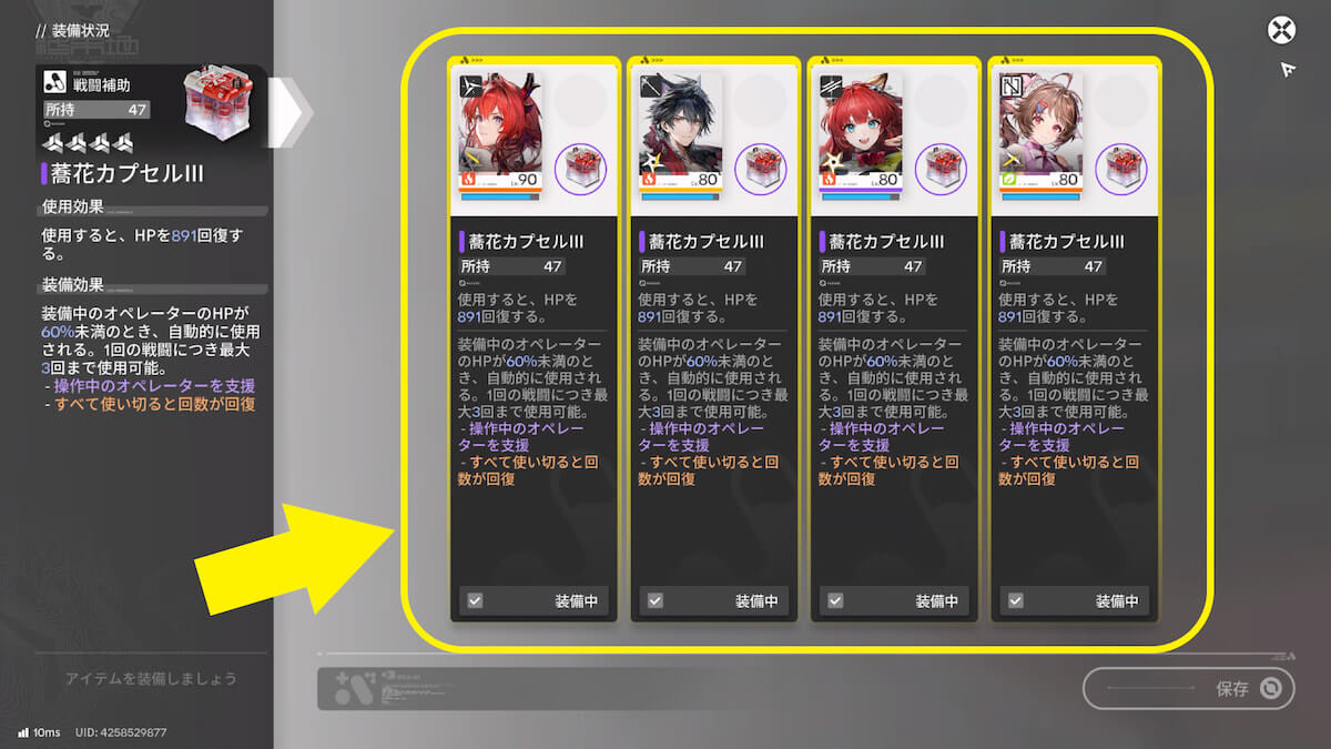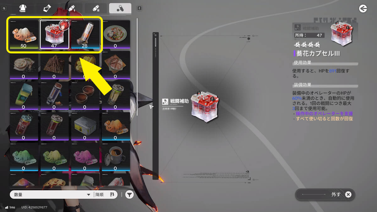 以上が【エンドフィールド】戦闘補助アイテムの装備方法と使い方になります。