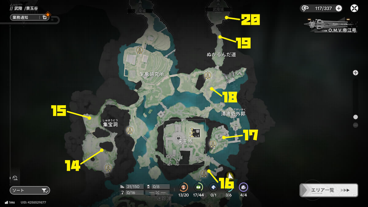 以上が【エンドフィールド】「武陵」景玉谷にあるオーリレン20個の場所まとめになります。