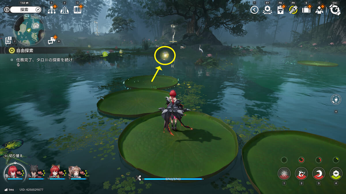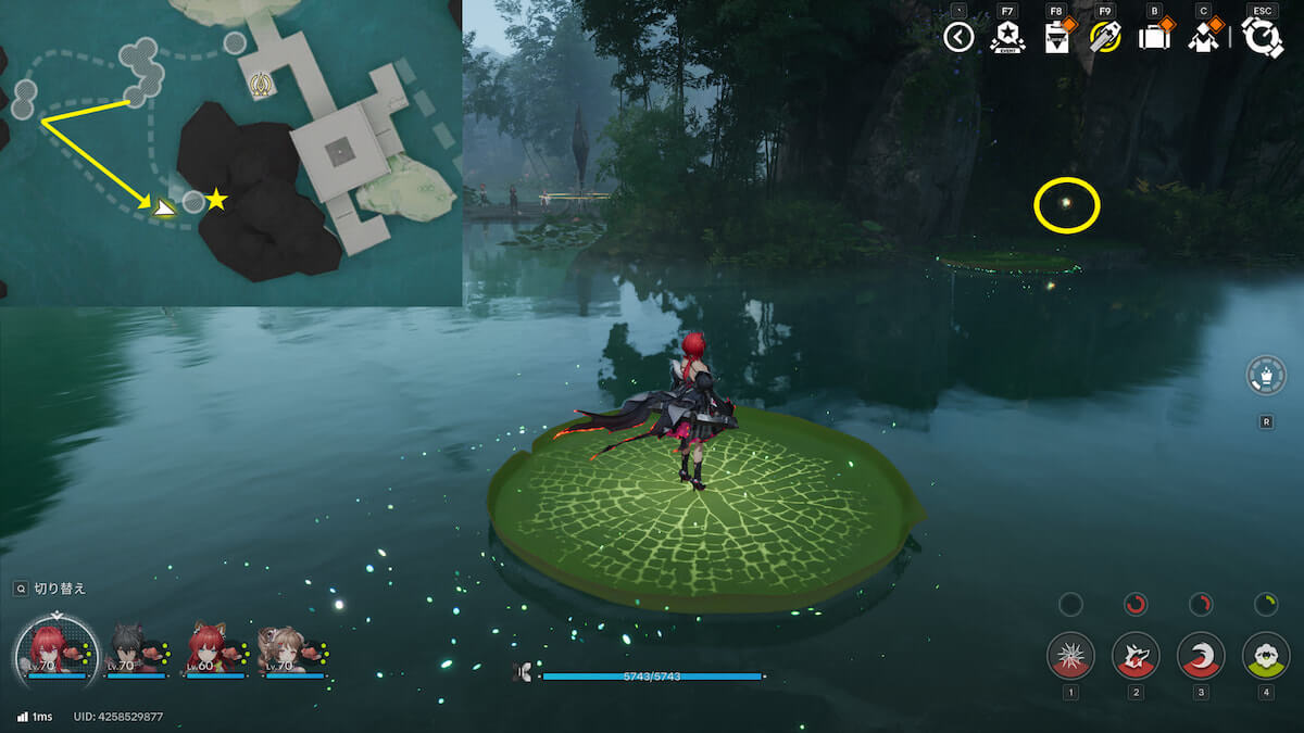 マップ画像3番の位置。葉に乗って移動する道中で、オーリレンを発見できます。