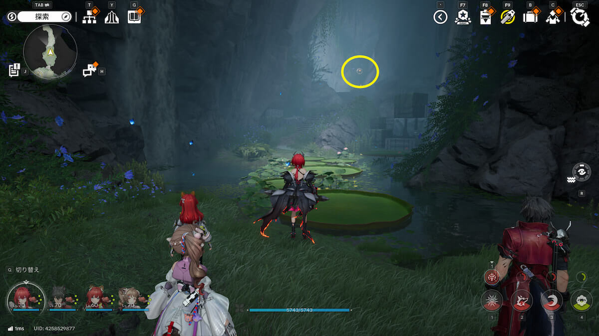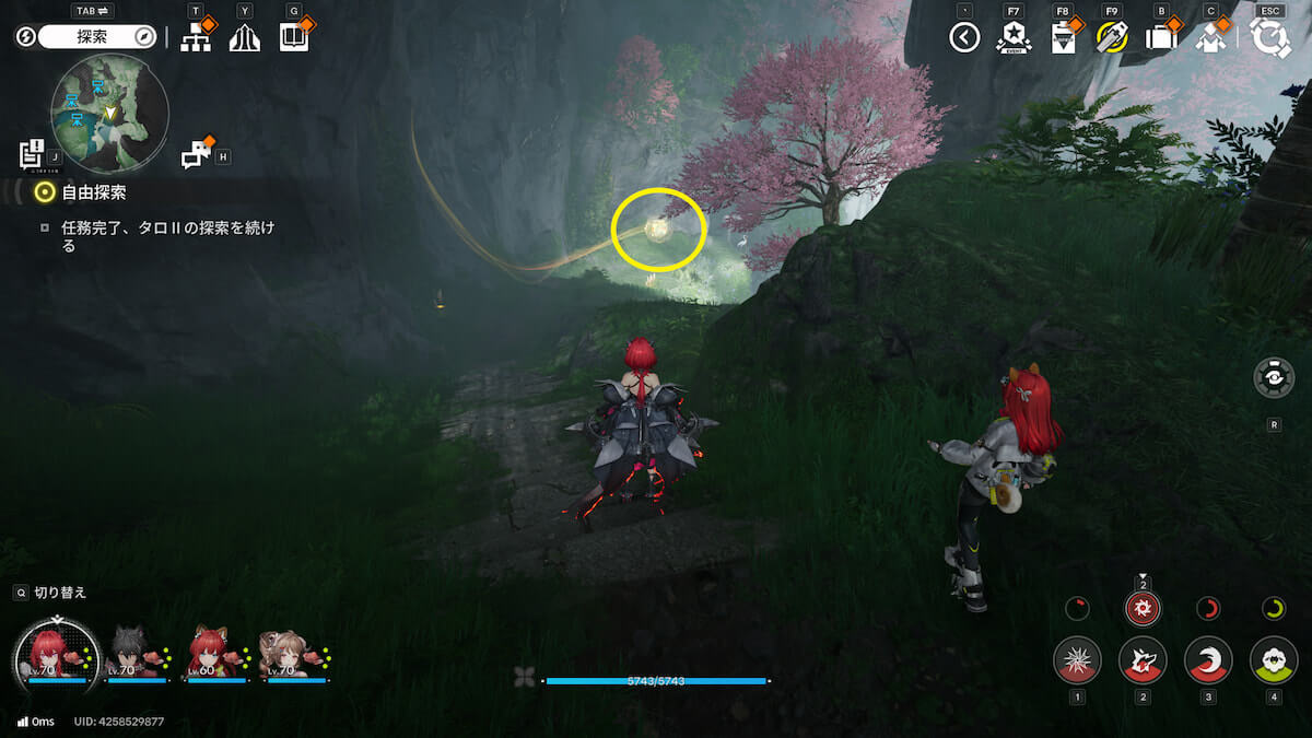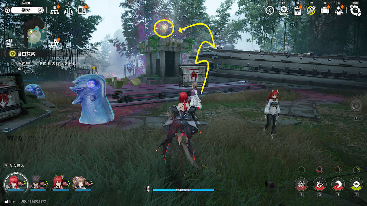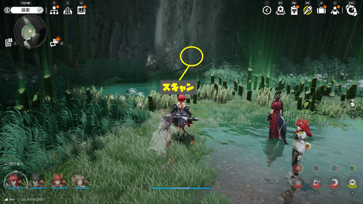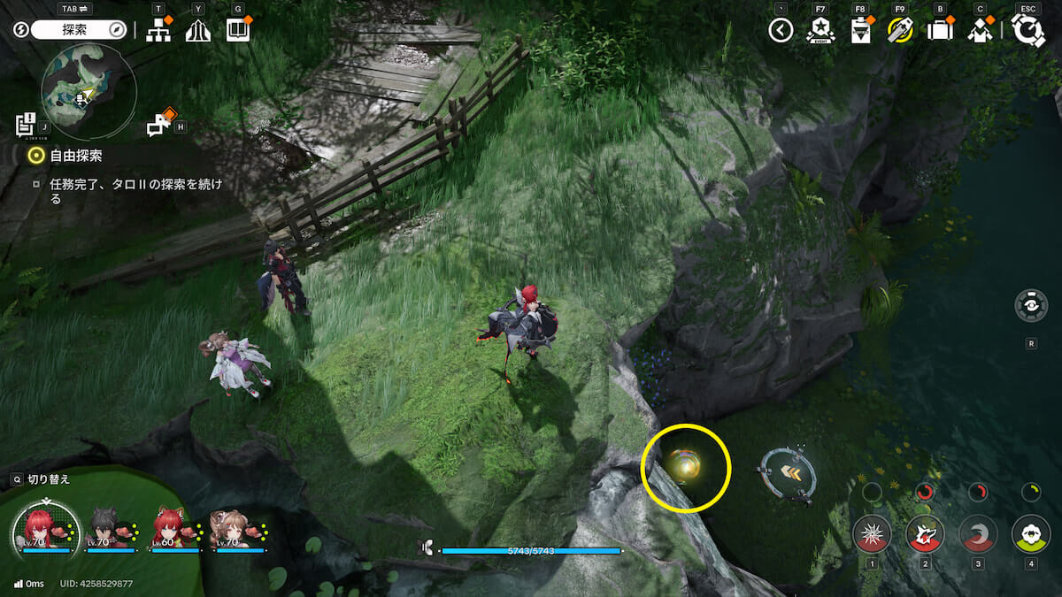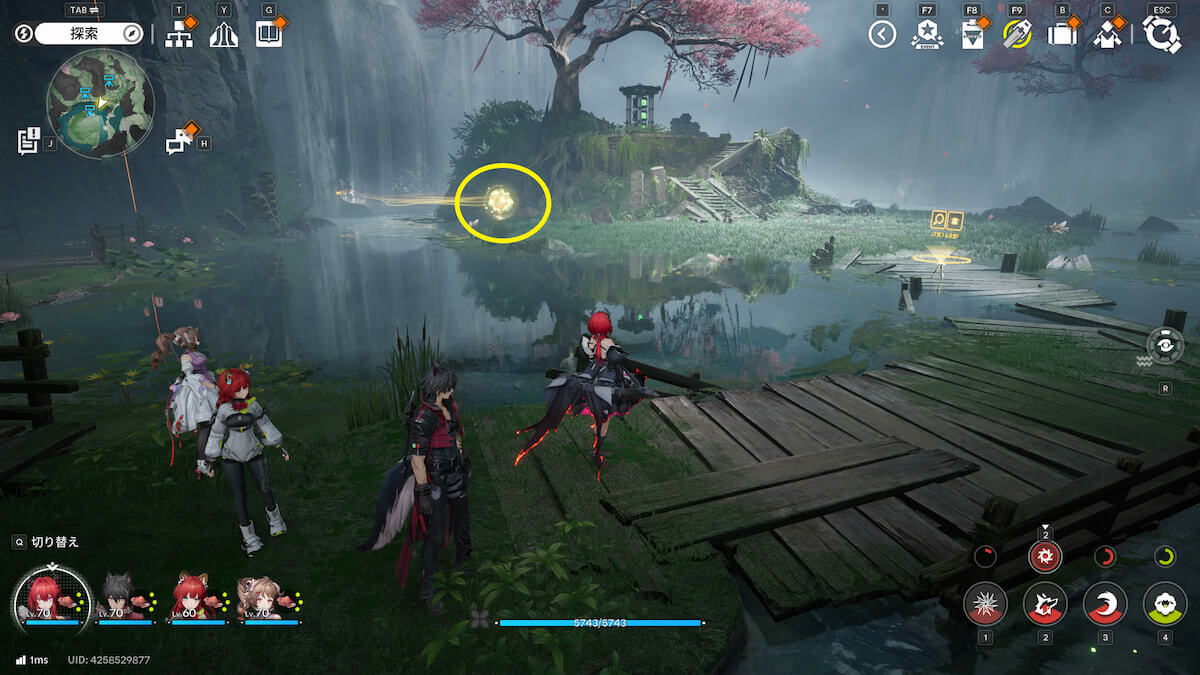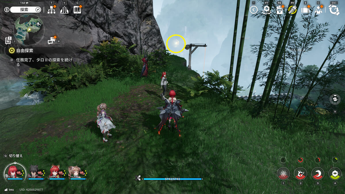 マップ画像5番の位置。モヤをスキャンし、通り道にある竹を攻撃して除去すると、オーリレンを発見できます。