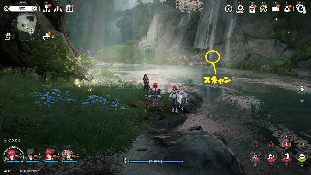 マップ画像20番の位置。滝の下にあるモヤをスキャンすると、オーリレンを発見できます。