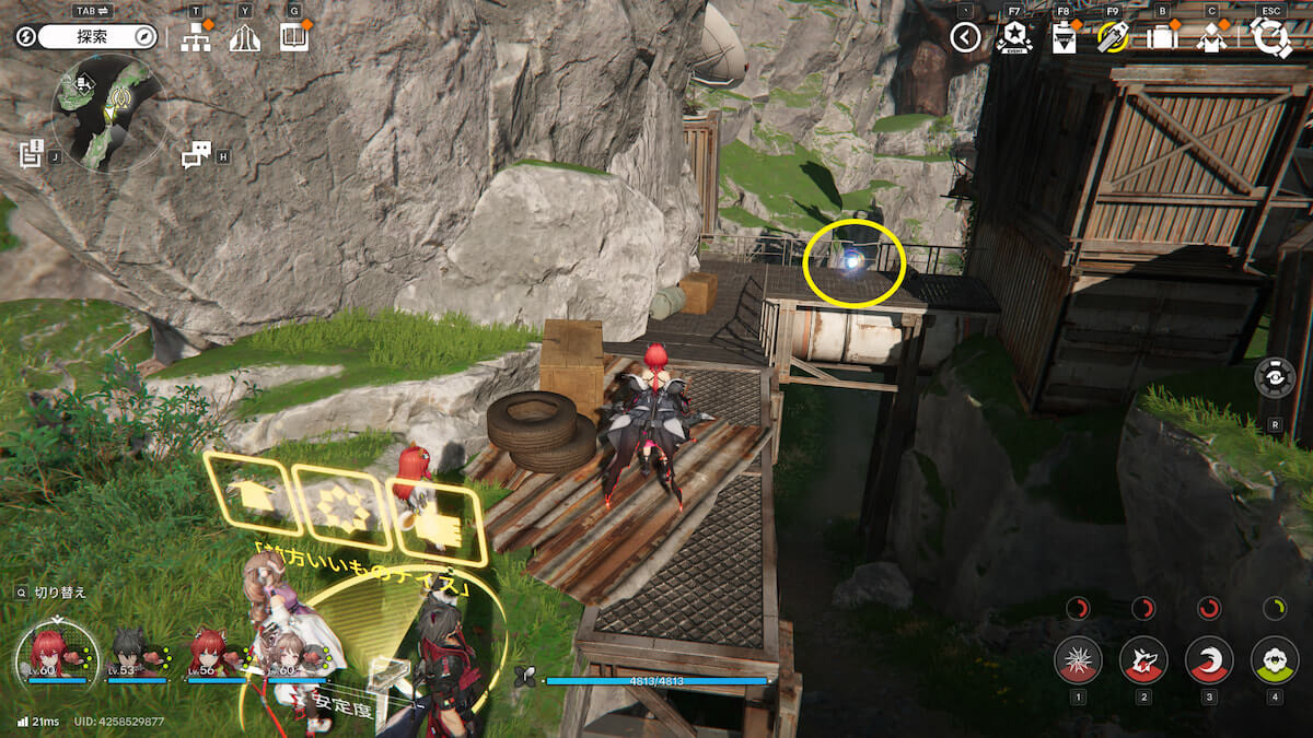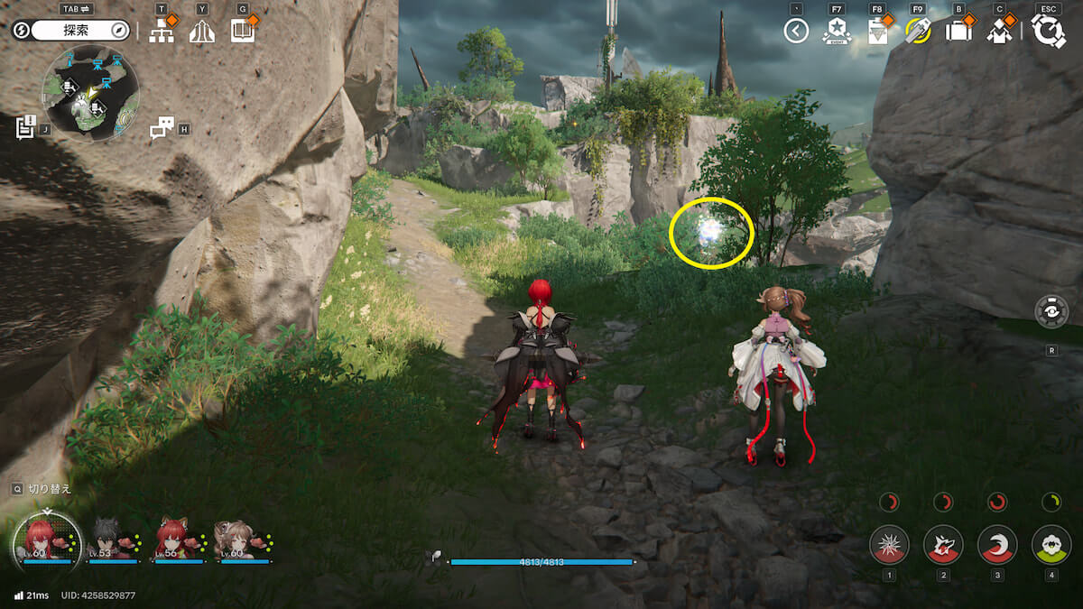 マップ画像4番の位置。崖沿いにある画像〇の箱を破壊すると、オーリレンを発見できます。