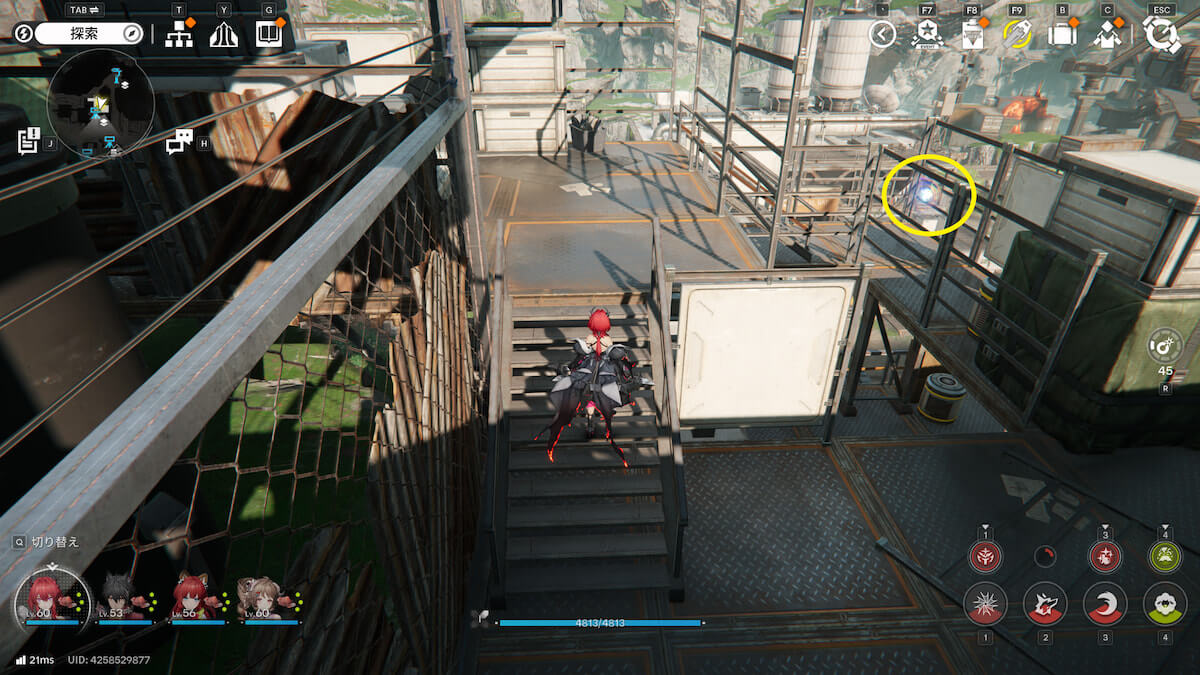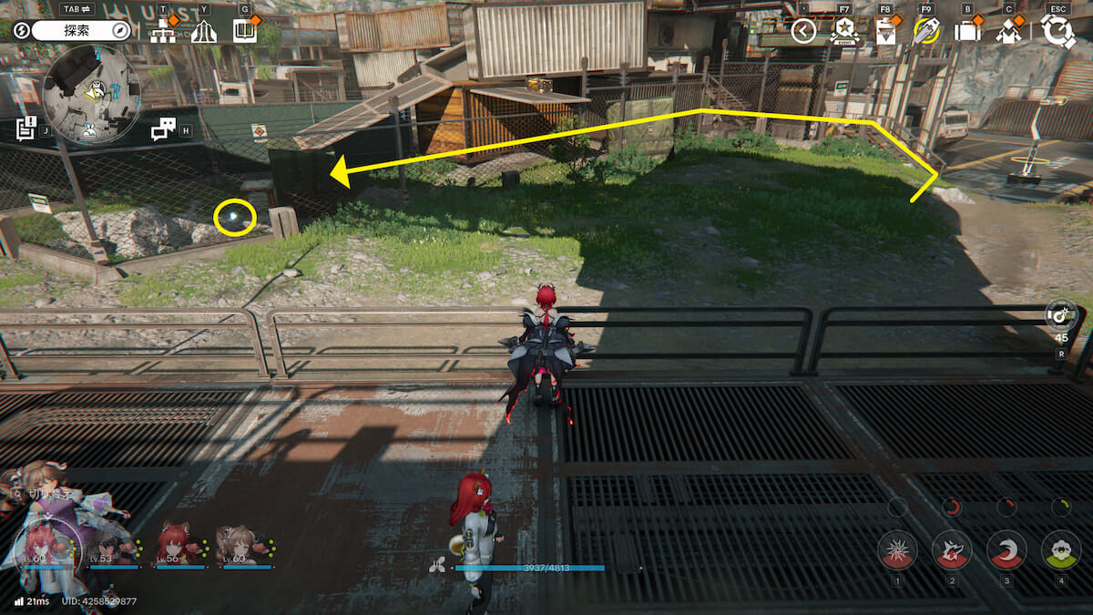マップ画像13番の位置。階段から敷地に入り、コンテナの中を通り抜けると、オーリレンを発見できます。