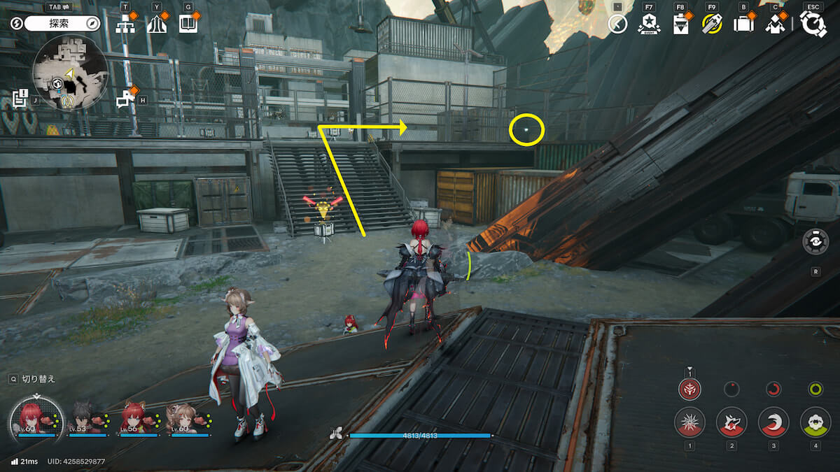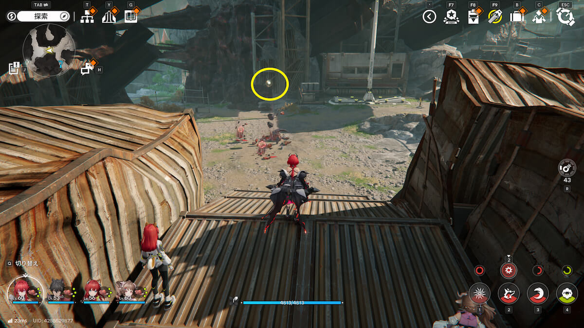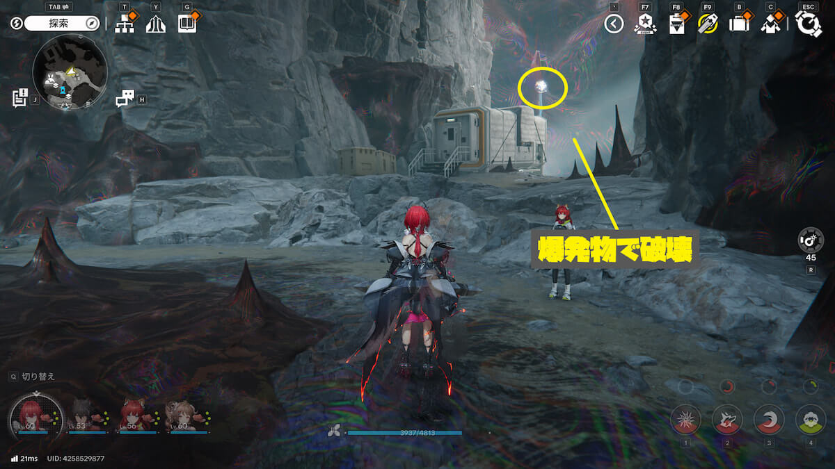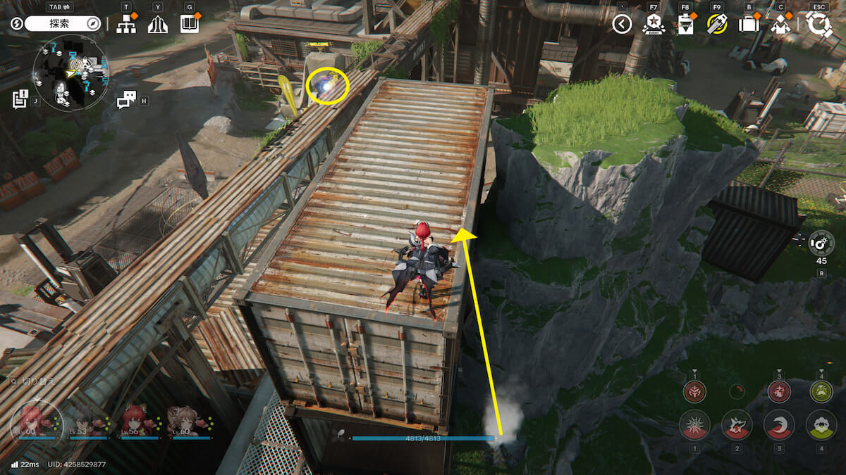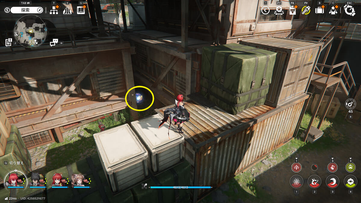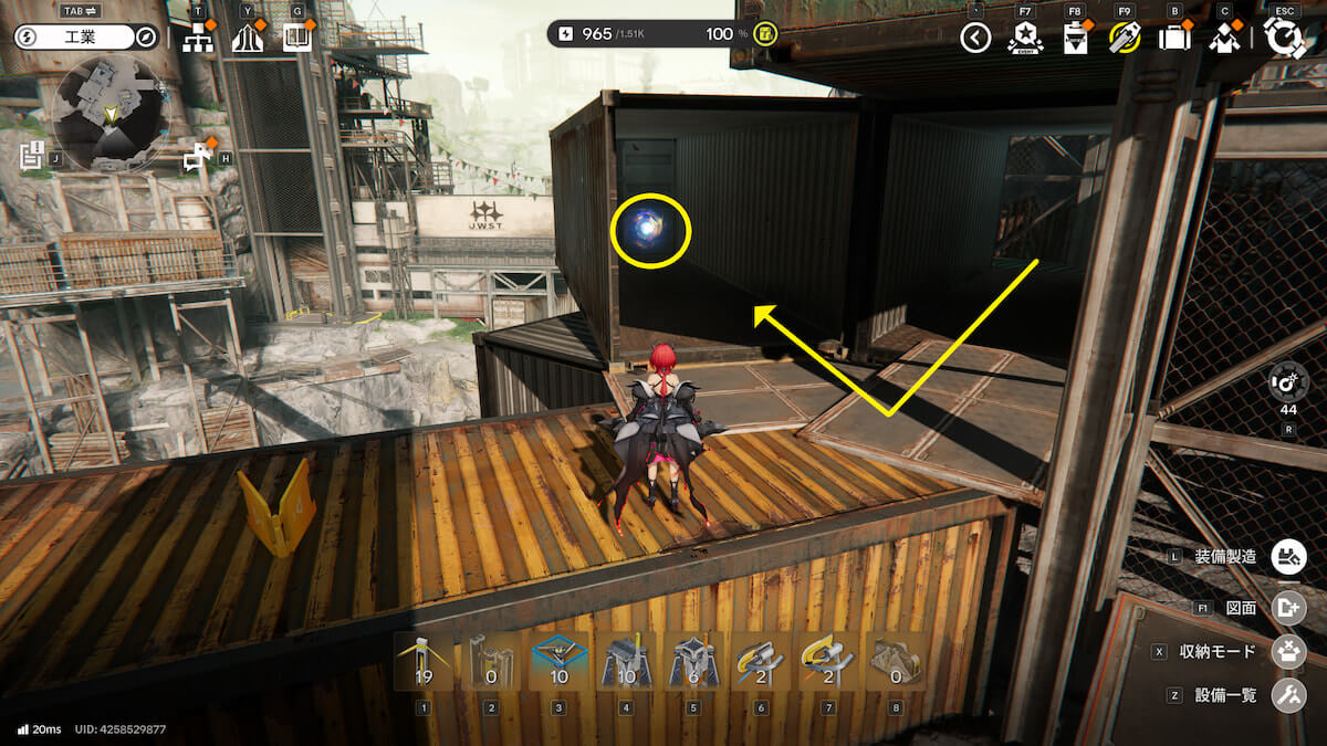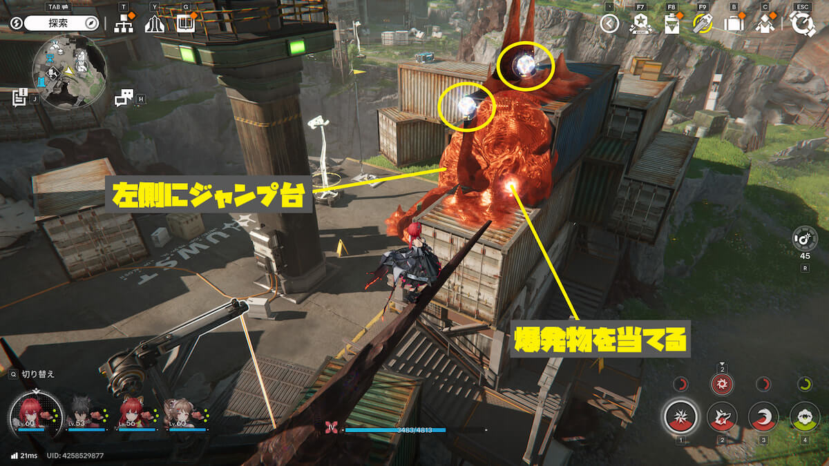 コアに爆発物を当て、ジャンプ台を使うとコンテナの上に移動できます。そのまま待機していれば1つは入手できますが、もう1つは逃げるので追いかけましょう。