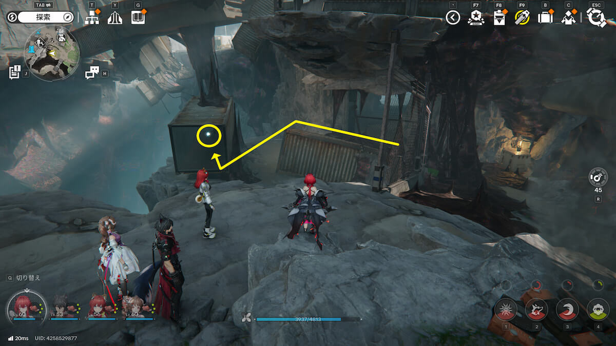 マップ画像19番の位置。崖沿いのコンテナの中で、オーリレンを発見できます。