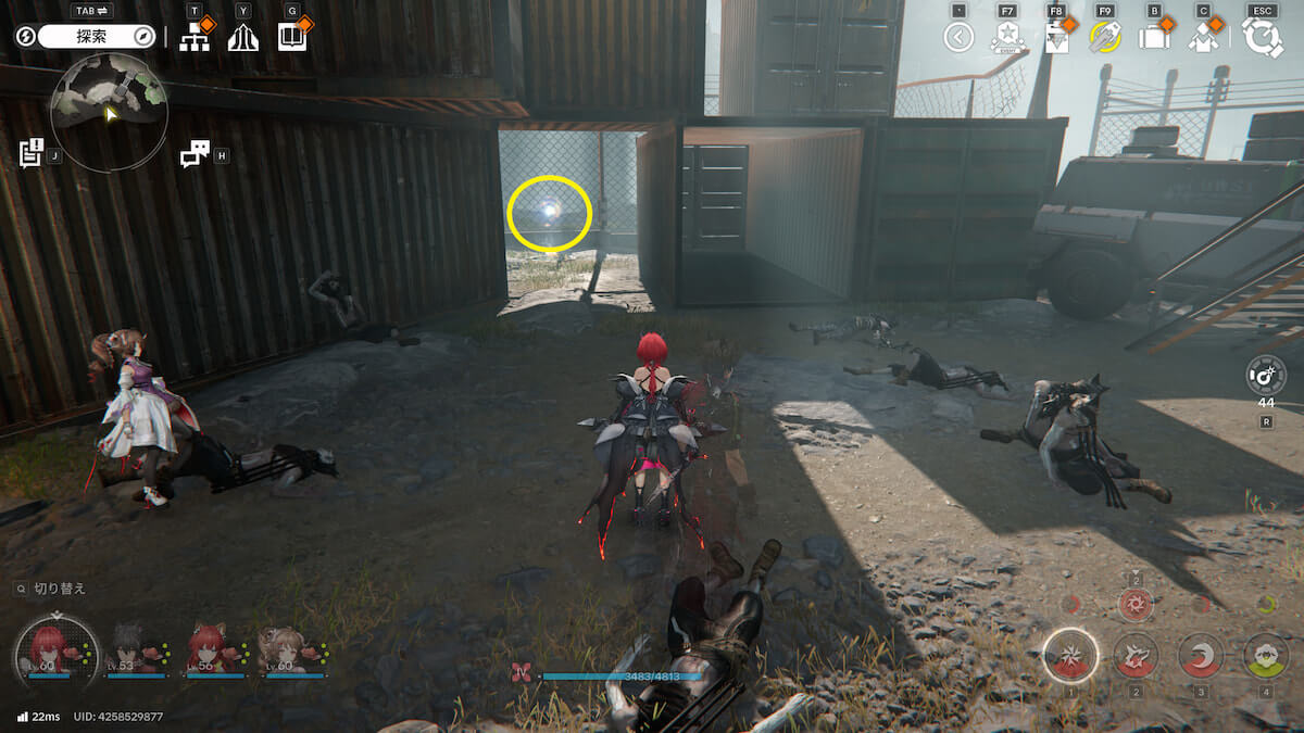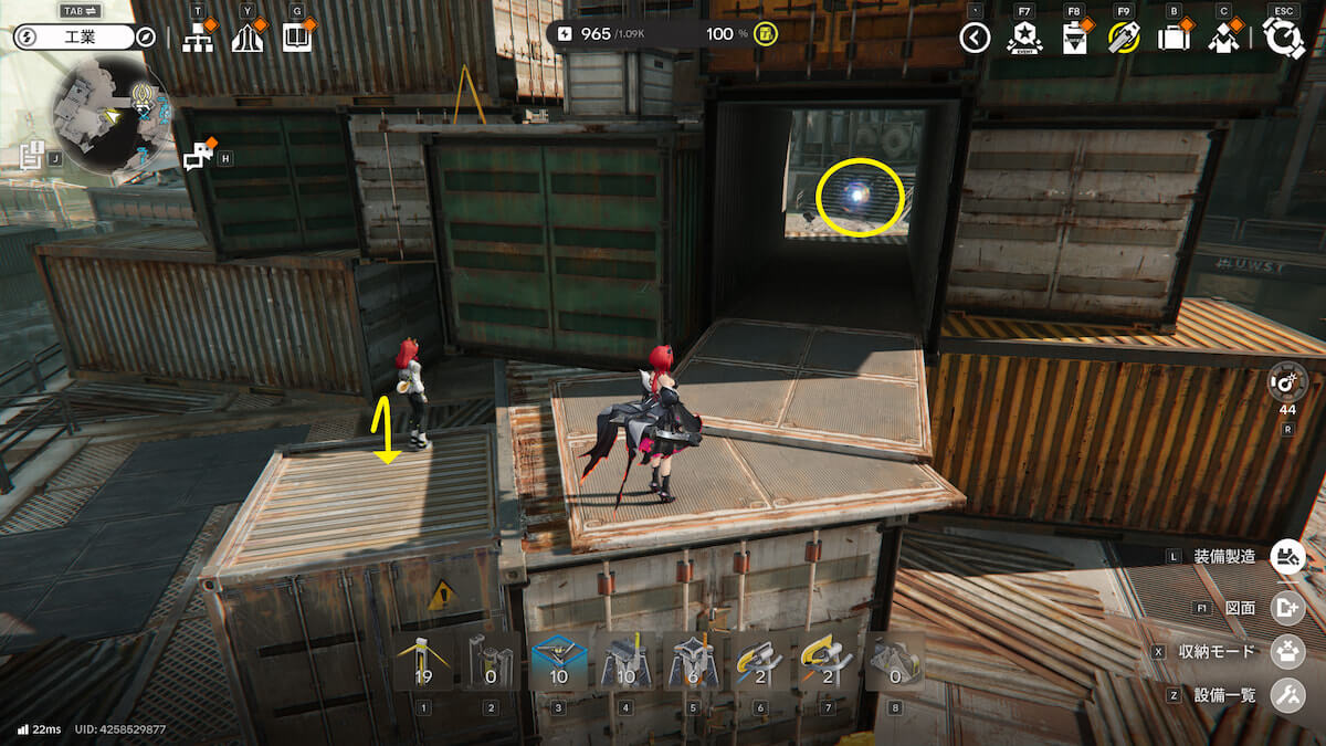 マップ画像21,22番の位置。寄生されたコンテナの周りで、オーリレンを発見できます。