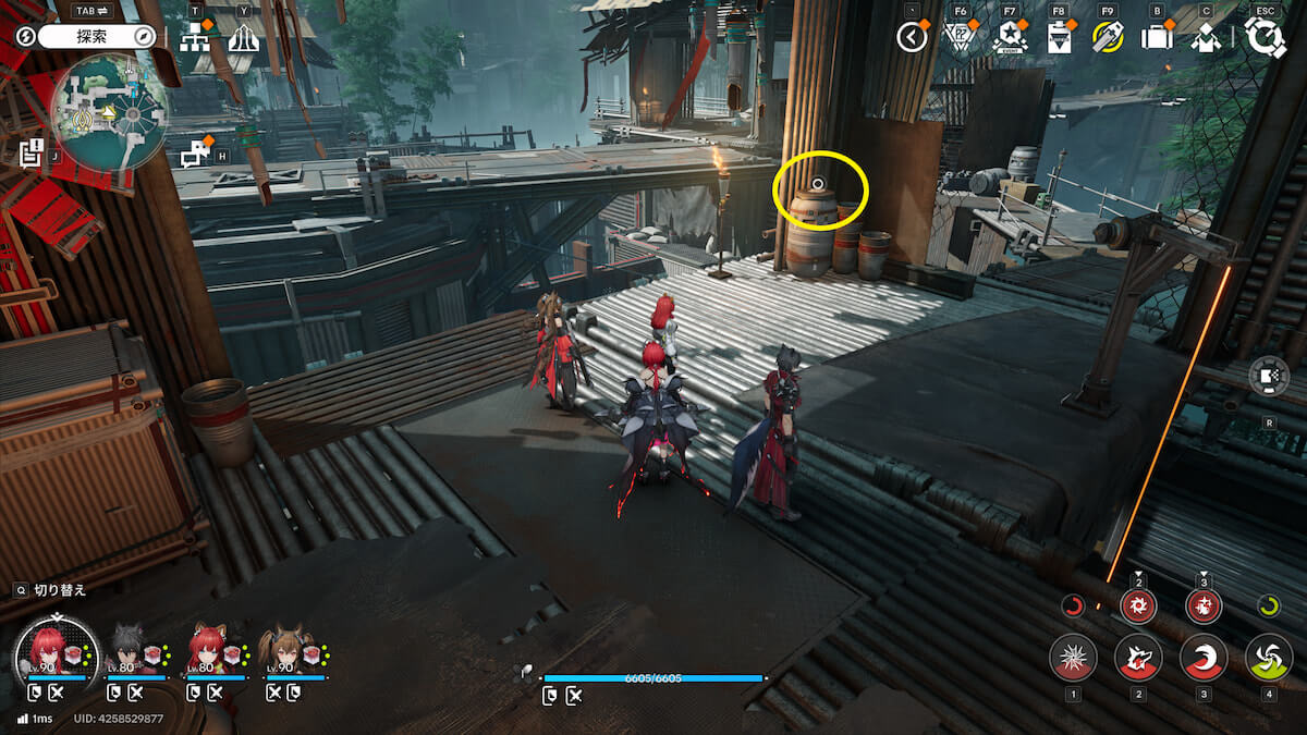 マップ画像4番の位置。水車を使って最上階まで進むと、手がかり4「深遠なメモ」を発見できます。