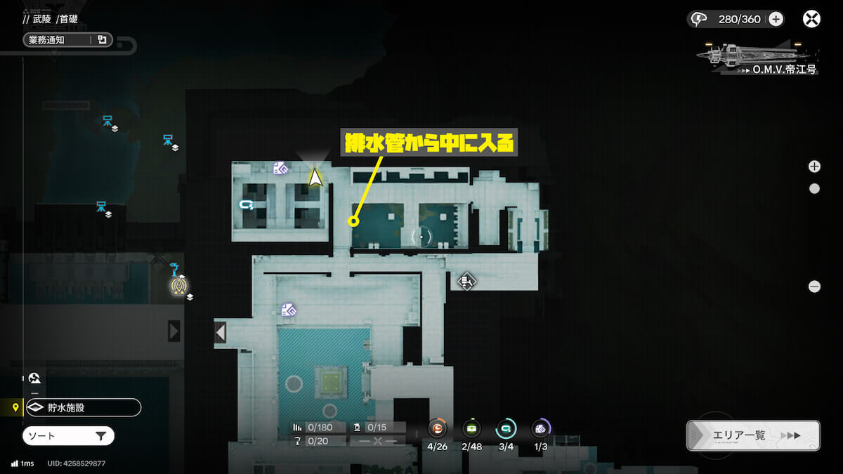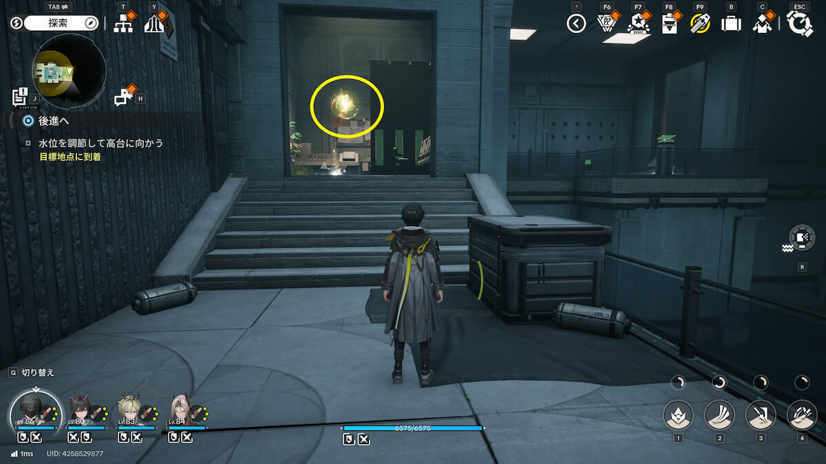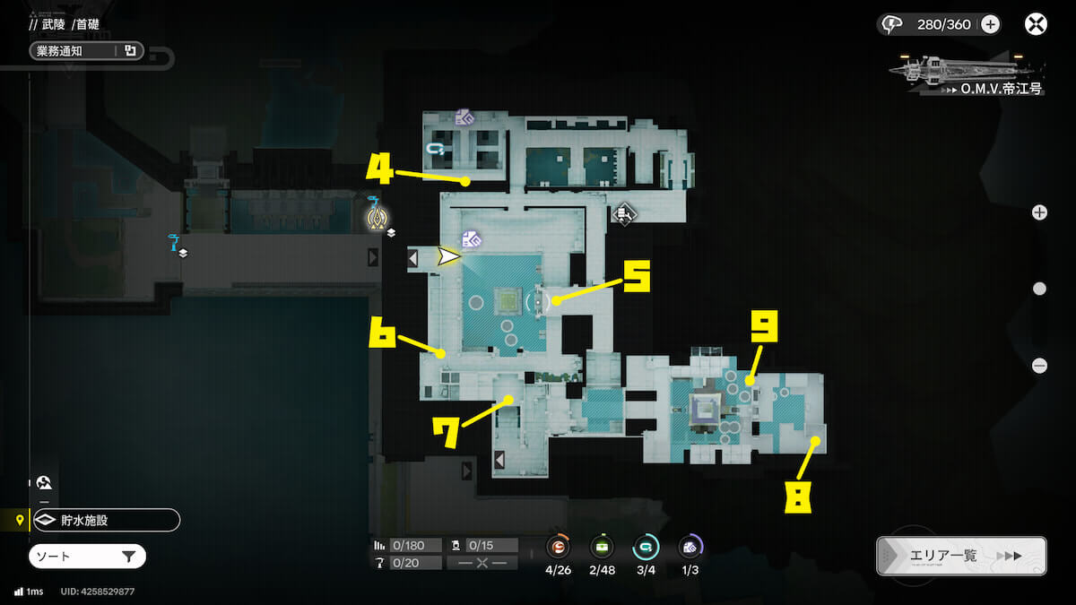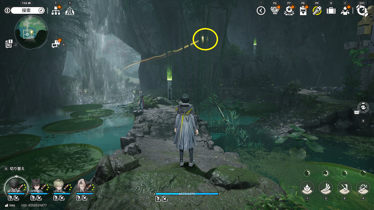 マップ画像9番の位置。周りの装置を使って水位を上げると、オーリレンを発見できます。