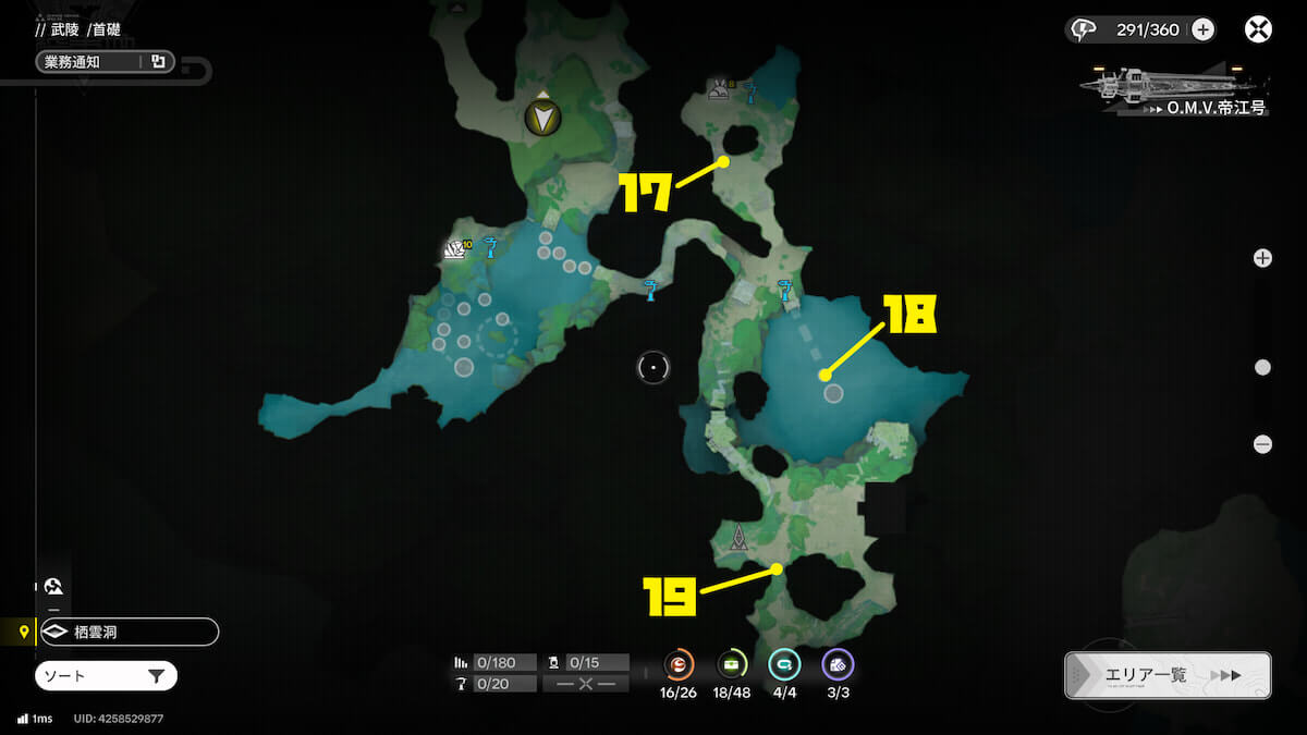 入手数はエリアごとに表示されるため、画像の場合は中枢エリアにあるオーリレンを43個入手していることになります。