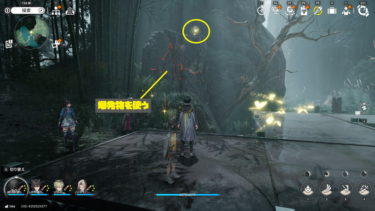 マップ画像12番の位置。爆発物で岩を破壊し、ジャンプ台に乗ると、オーリレンを発見できます。