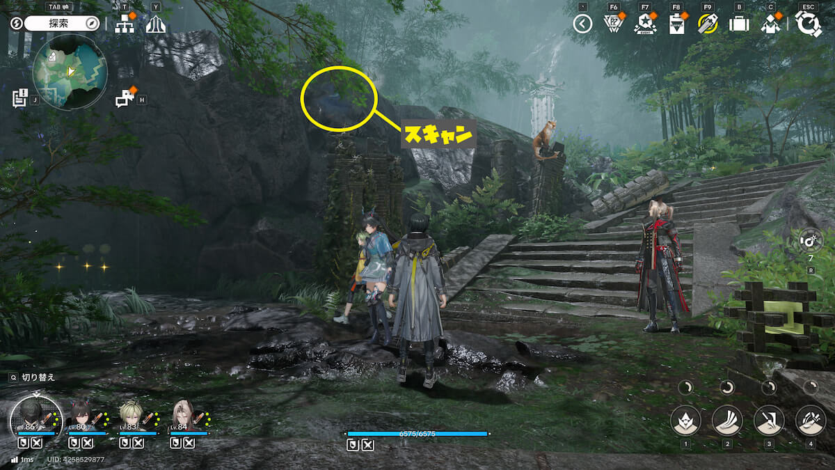 マップ画像25番の位置。階段脇のブロックにあるモヤをスキャンすると、オーリレンを発見できます。
