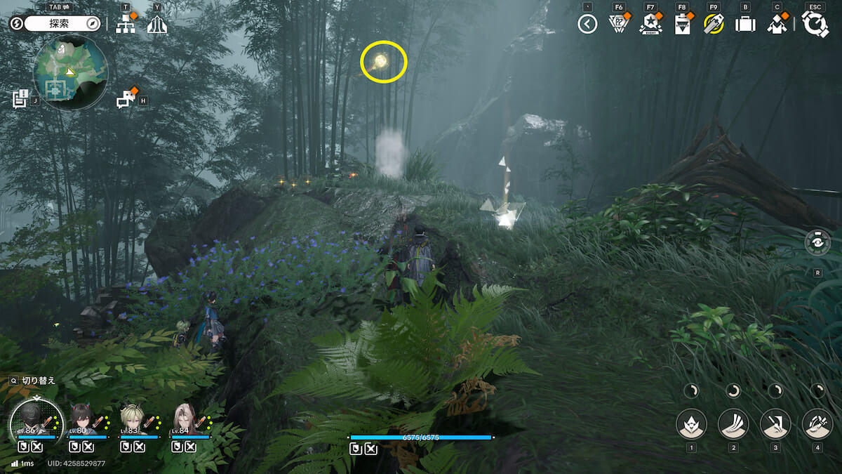 マップ画像1番の位置。林の中で、オーリレンを発見できます。