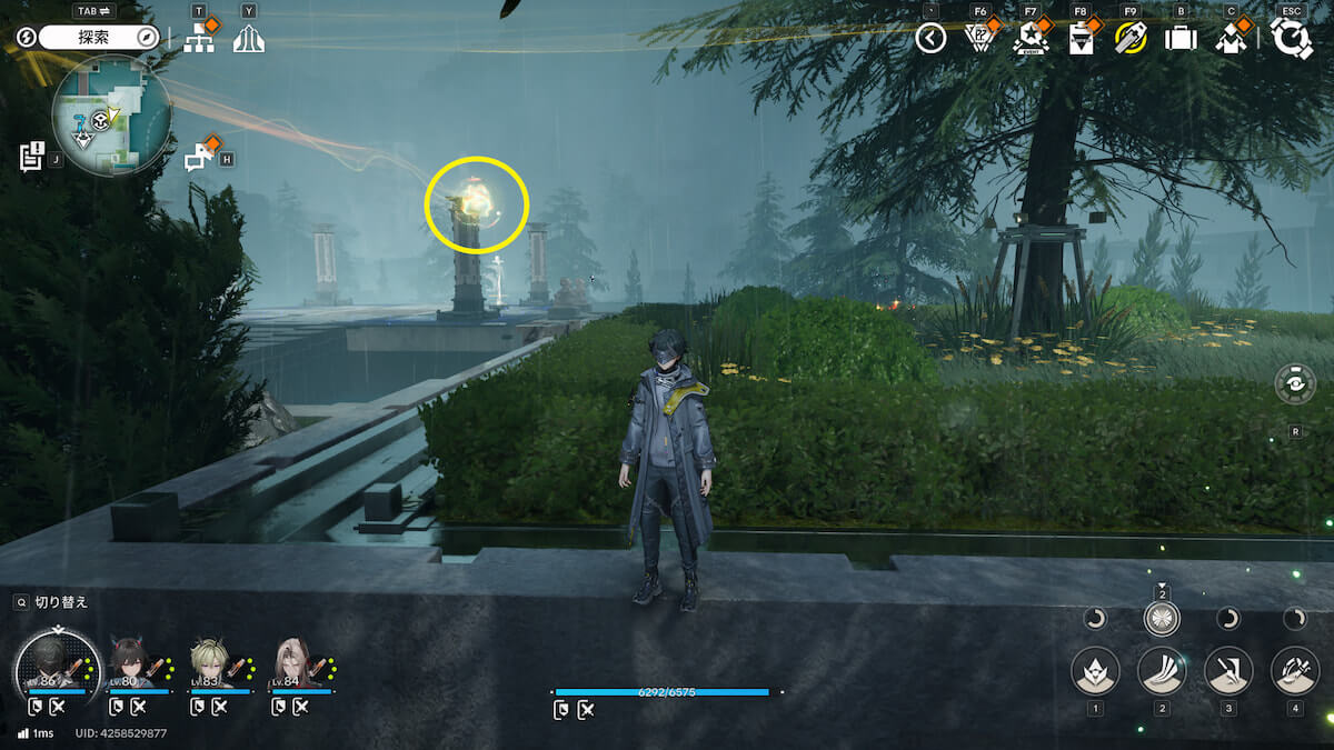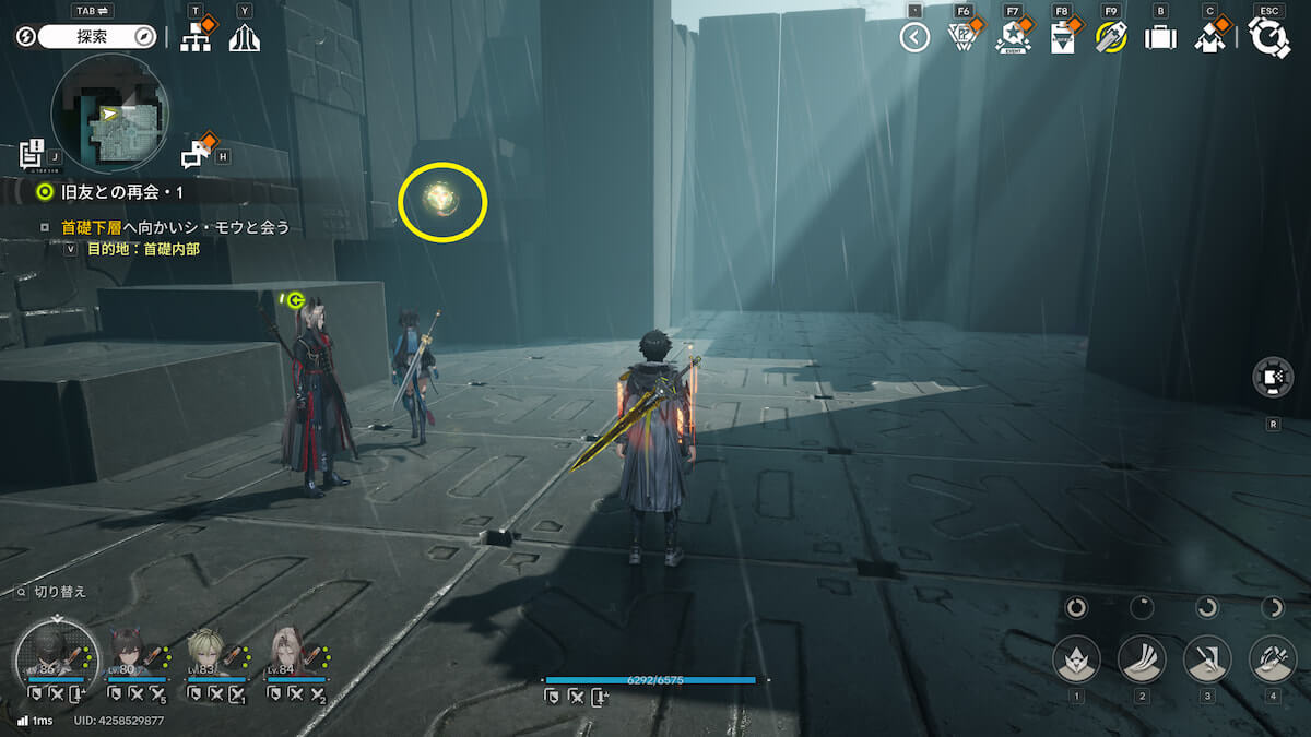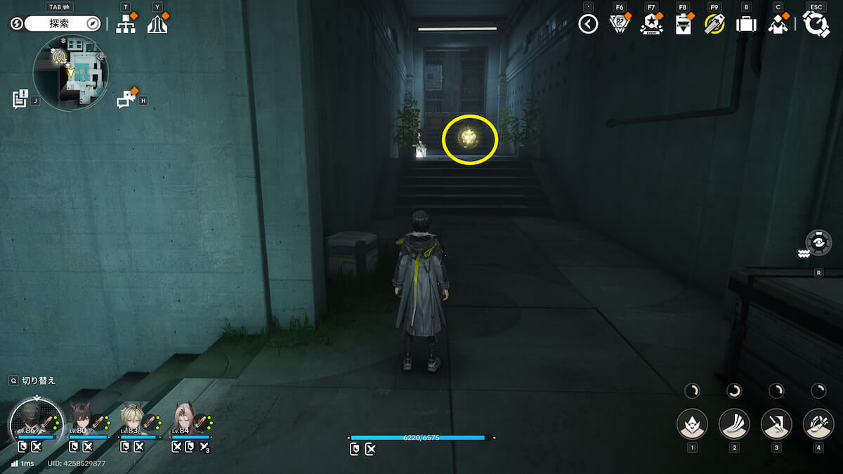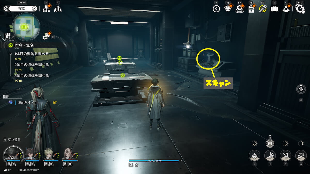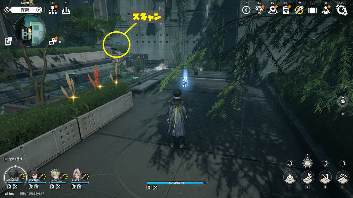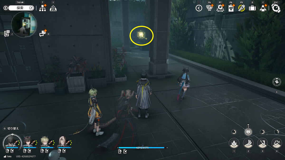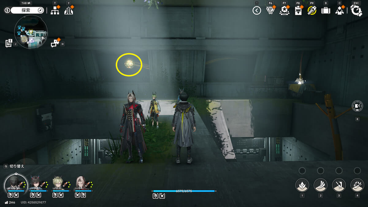 マップ画像13番の位置。通路脇の柱の上にあるモヤをスキャンすると、オーリレンを発見できます。