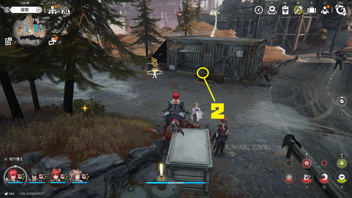 マップ画像2番の位置。高地大通りから西のコンテナで、手がかり2「絶望した者の手紙」を発見できます。