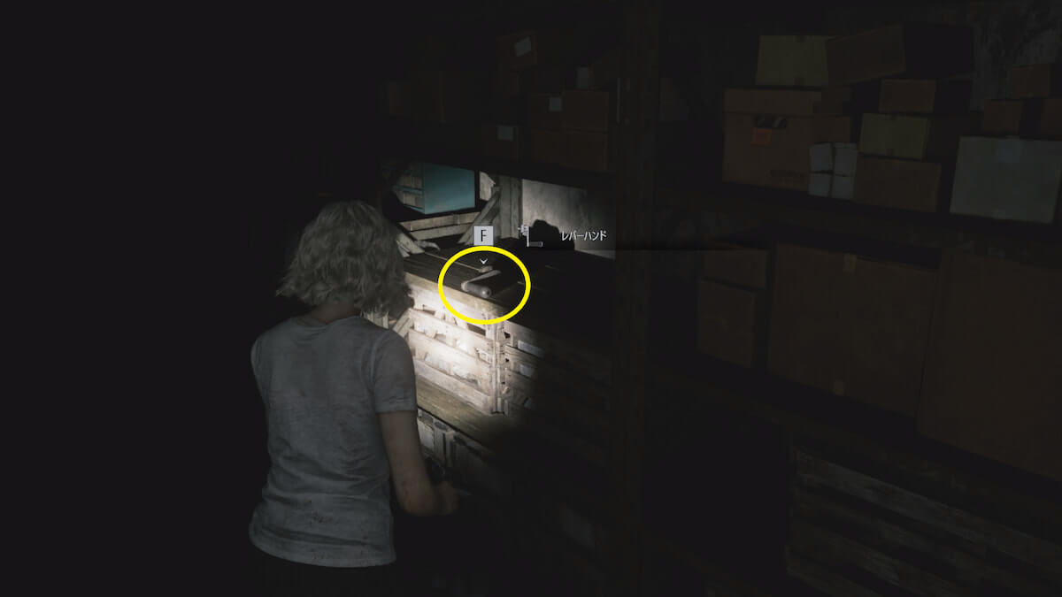 備品保管室の棚でストーリーアイテム「レバーハンド」を入手できます。