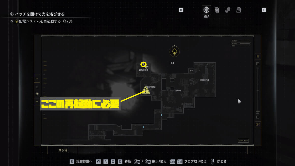 3つの配電システムを再起動したら、2階に戻ってハッチを開けましょう。エミリーがいる資材格納庫でイベントを見ると次のエリアに移動します。