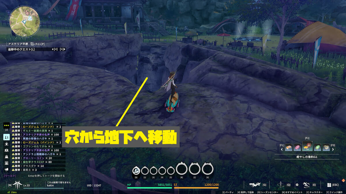 「アンドラの休憩所」にある地面の穴から「アンドラ地下坑道」に移動します。