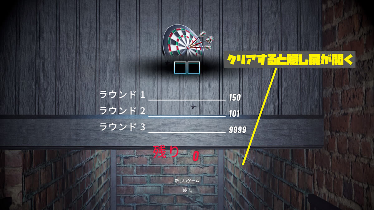 『バー』の奥の部屋にあるダーツを成功させると隠し扉が開き、シークレット2を発見できます。