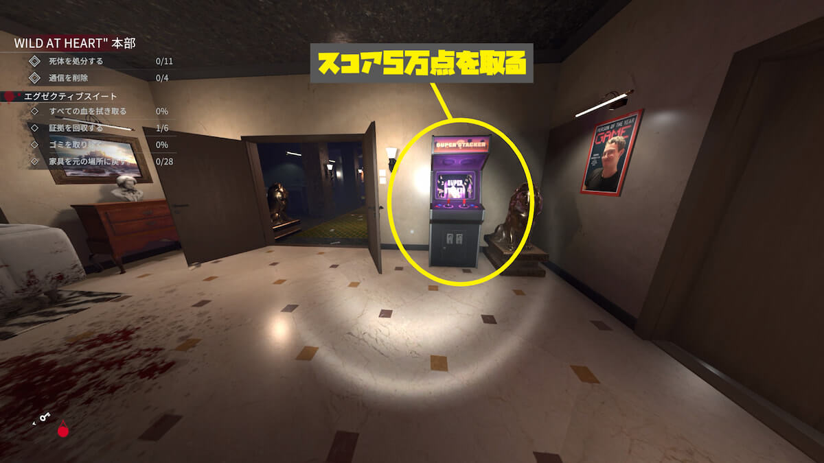 『エグゼクティブスイート』にあるゲームで5万点を取るとシークレット2を発見でき、金庫からカセット4「BEEP」を入手できます。