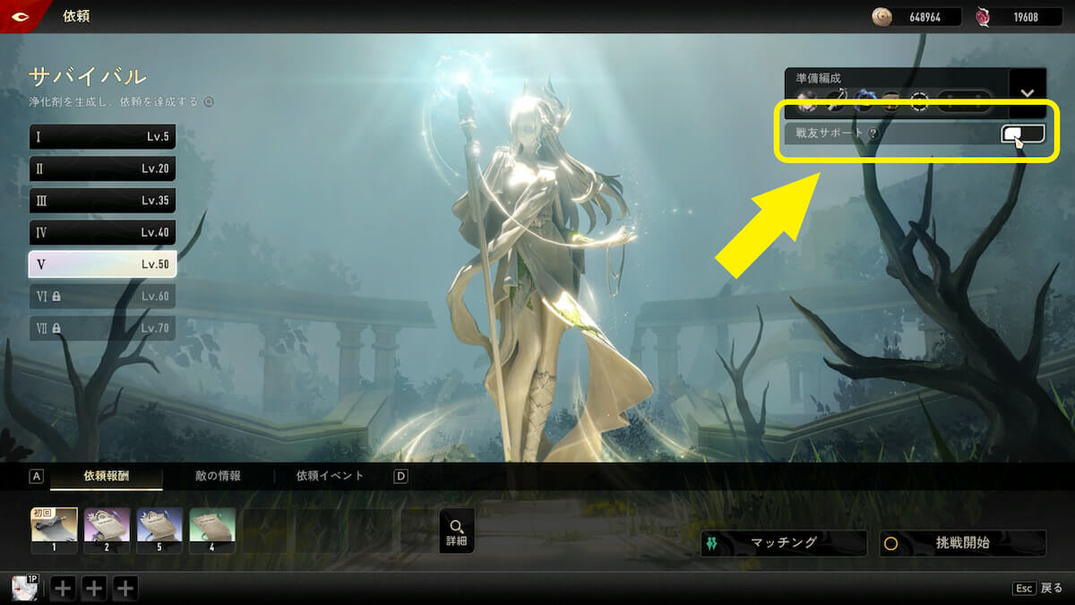 クエスト開始画面にある「戦友サポート」をオフにすると、戦友が自動で召喚されなくなります。