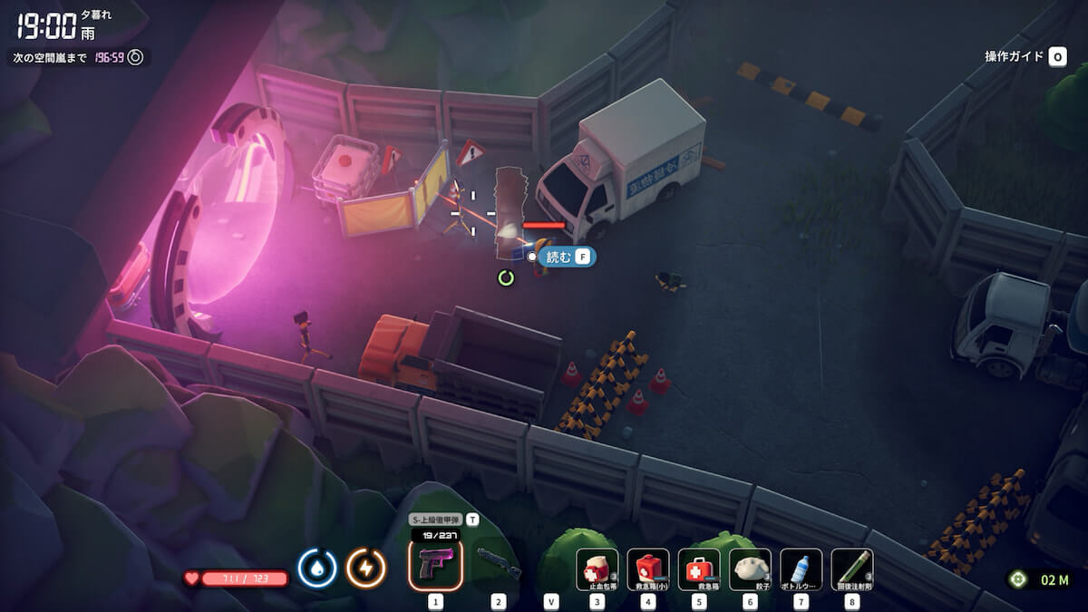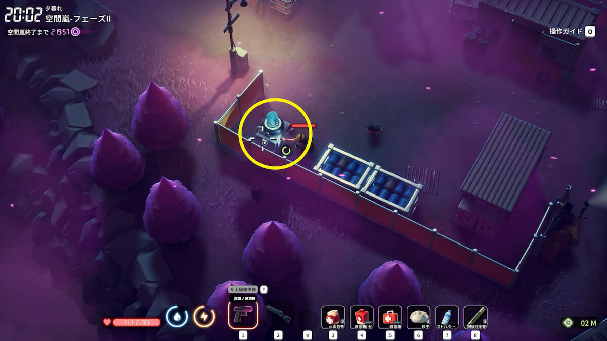 嵐エリアに入ったら、通路をまっすぐ進みましょう。左側の作業現場でビーコンを発見できます。