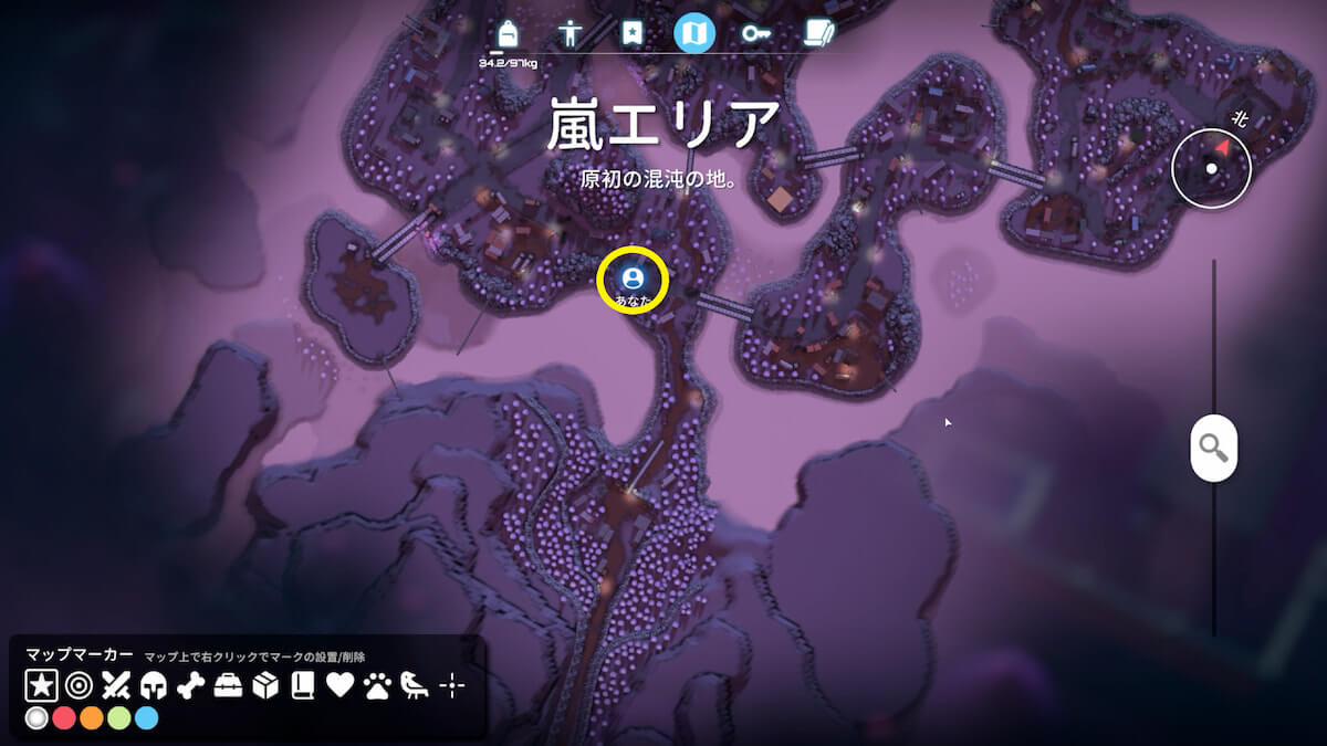 エリアゼロ西側の出口から、嵐エリアへ移動できます。