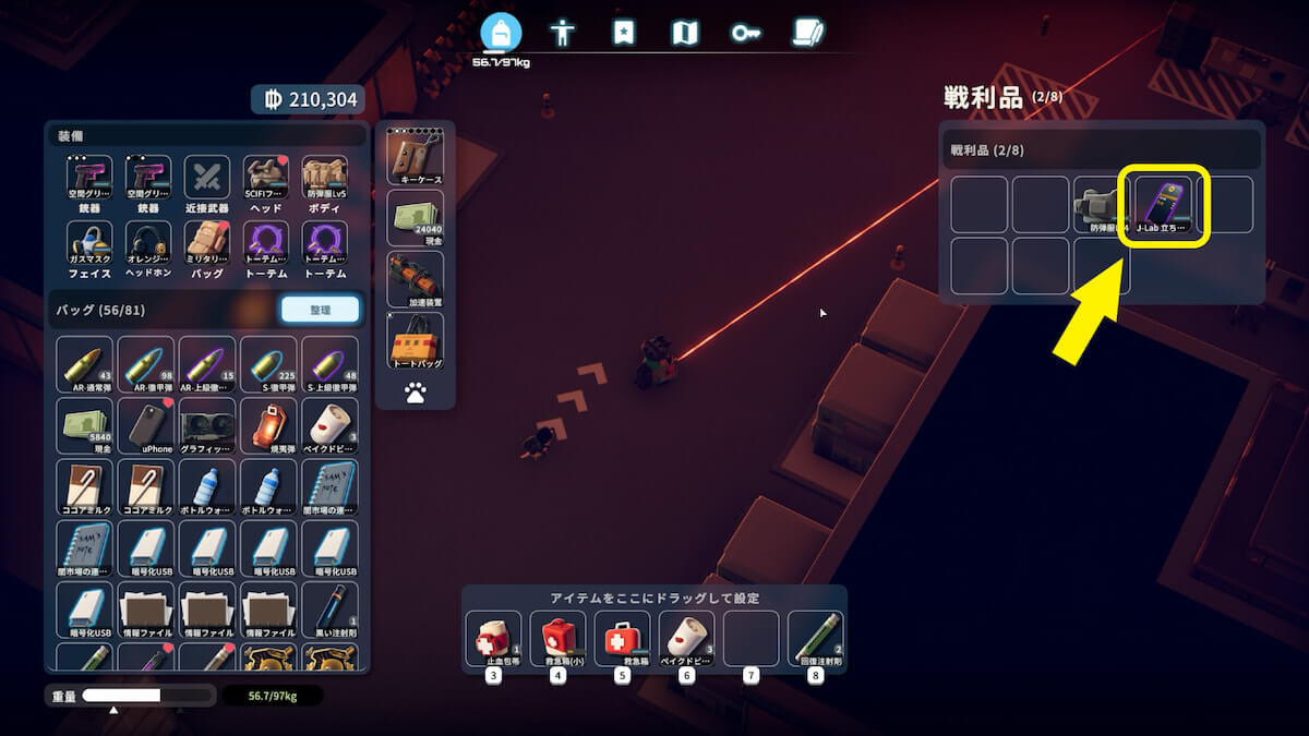 これらの装備はJ-Lab研究所の探索中に入手できます。筆者は画像の2か所で発見しました。