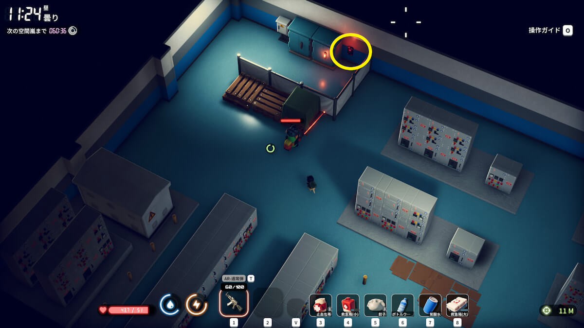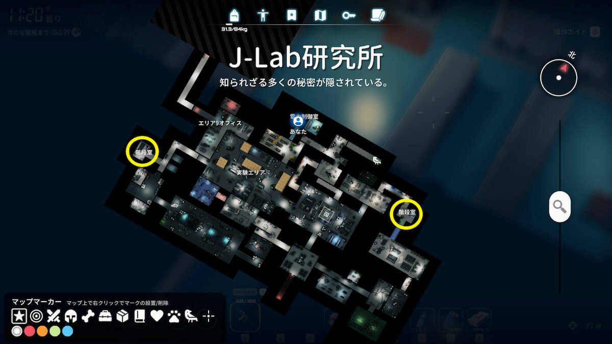 電源を復旧させたら、画像〇にある階段から地下1階へ移動します。