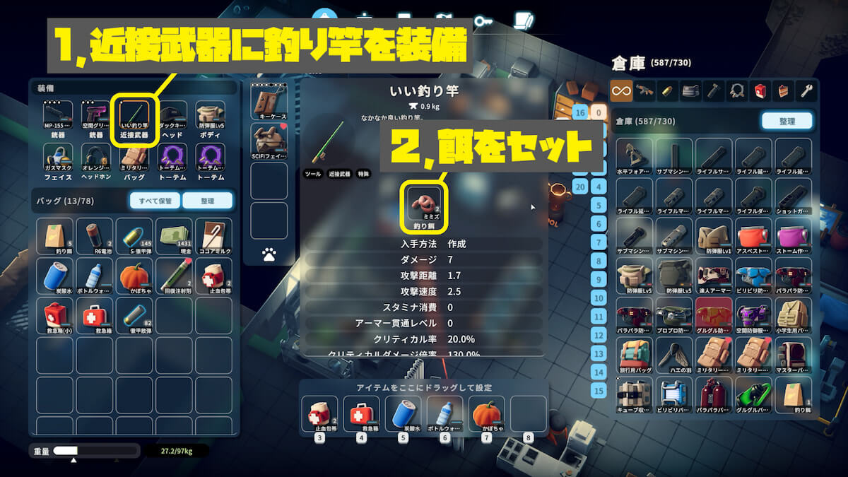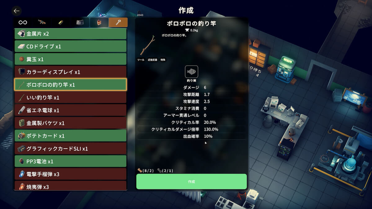 作業台で釣り竿を作成する