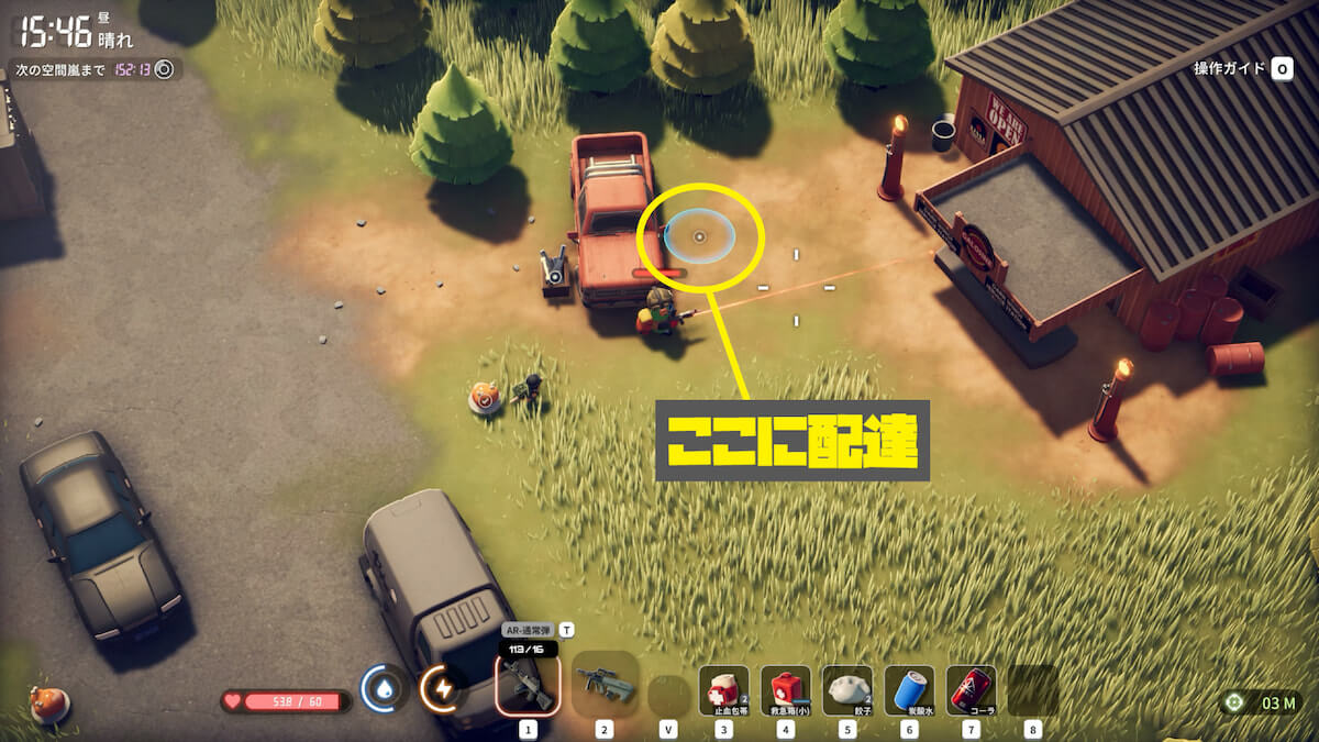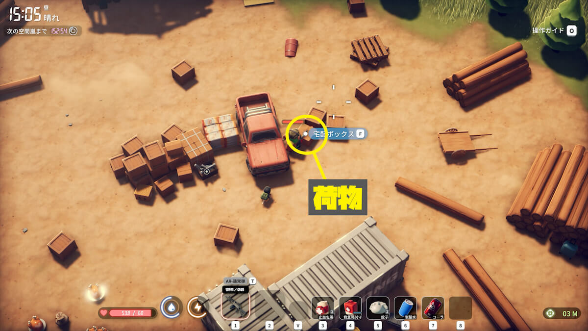 | 目標 | ・荷物を受け取り、安全に配達する ・任意の敵を3人倒す |