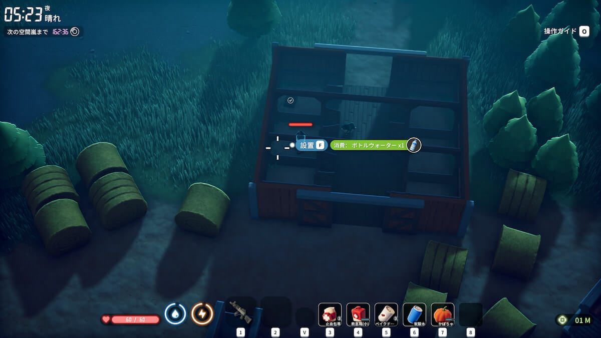 農家の小屋に入り、地面を調べるとボトルウォーターを隠せます。