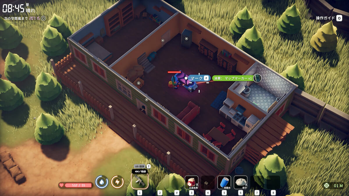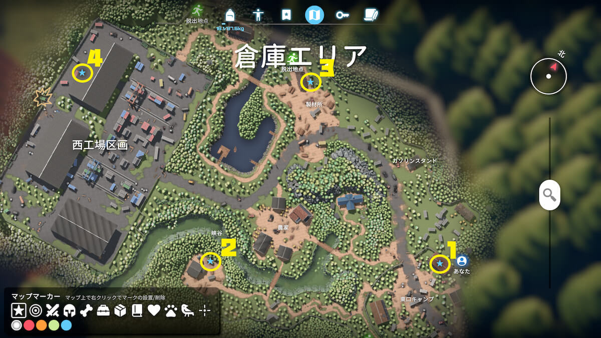 マップ画像3番の位置。製材所の黄色コンテナの中で生命維持装置を発見できます。