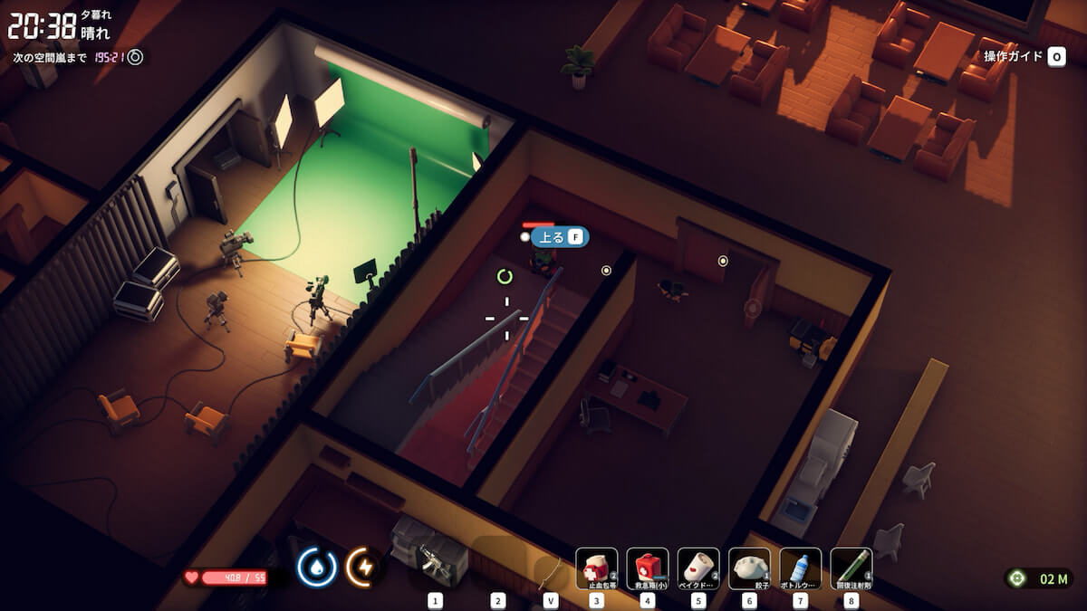 - 倉庫エリア西のフェンスをダイナマイト×2で破壊して移動
