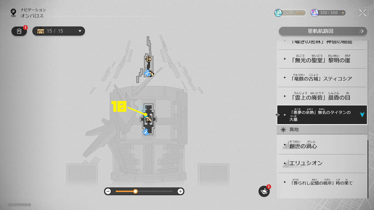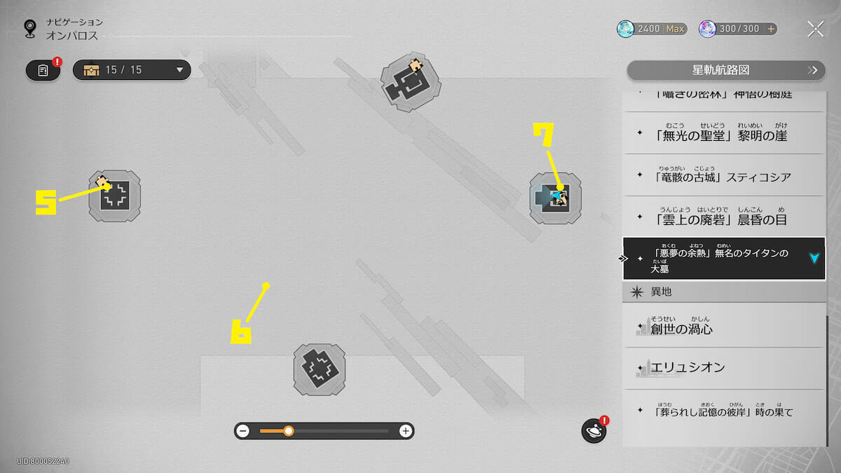 以上が【崩壊スターレイル】「悪夢の余熱」無名のタイタンの大墓にいるエンドモ10匹の場所まとめ【オンパロス】になります。