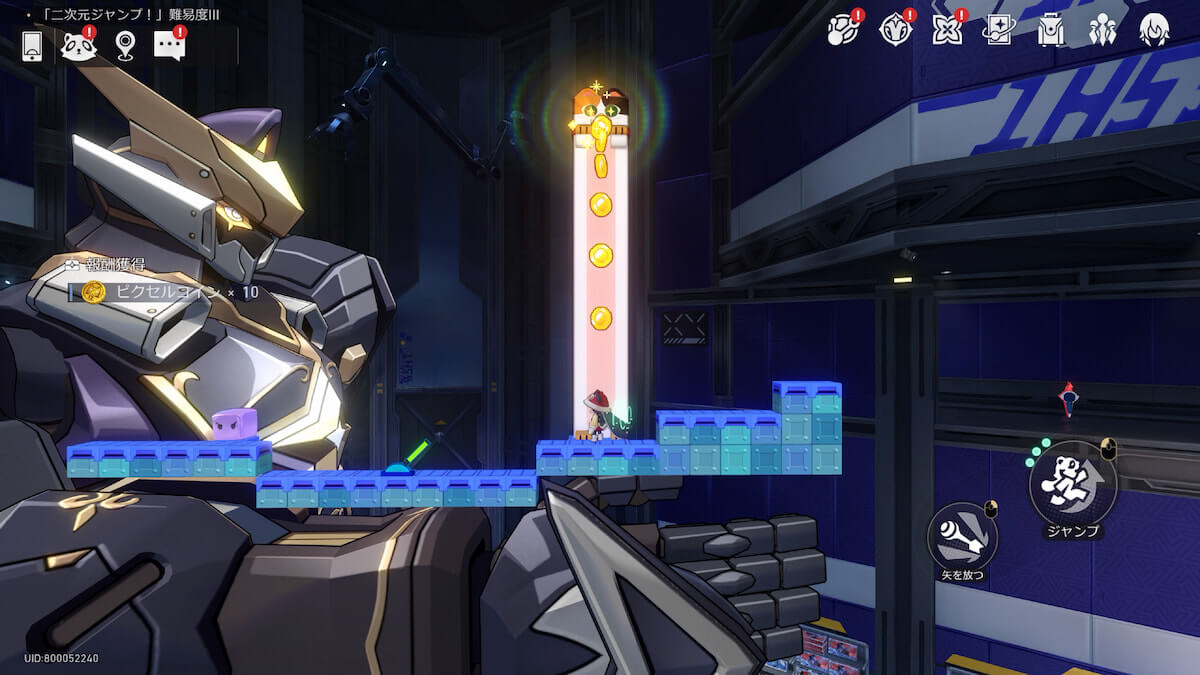 「二次元ジャンプ!」で、コインが飛び出すボタンを10回連続で押す