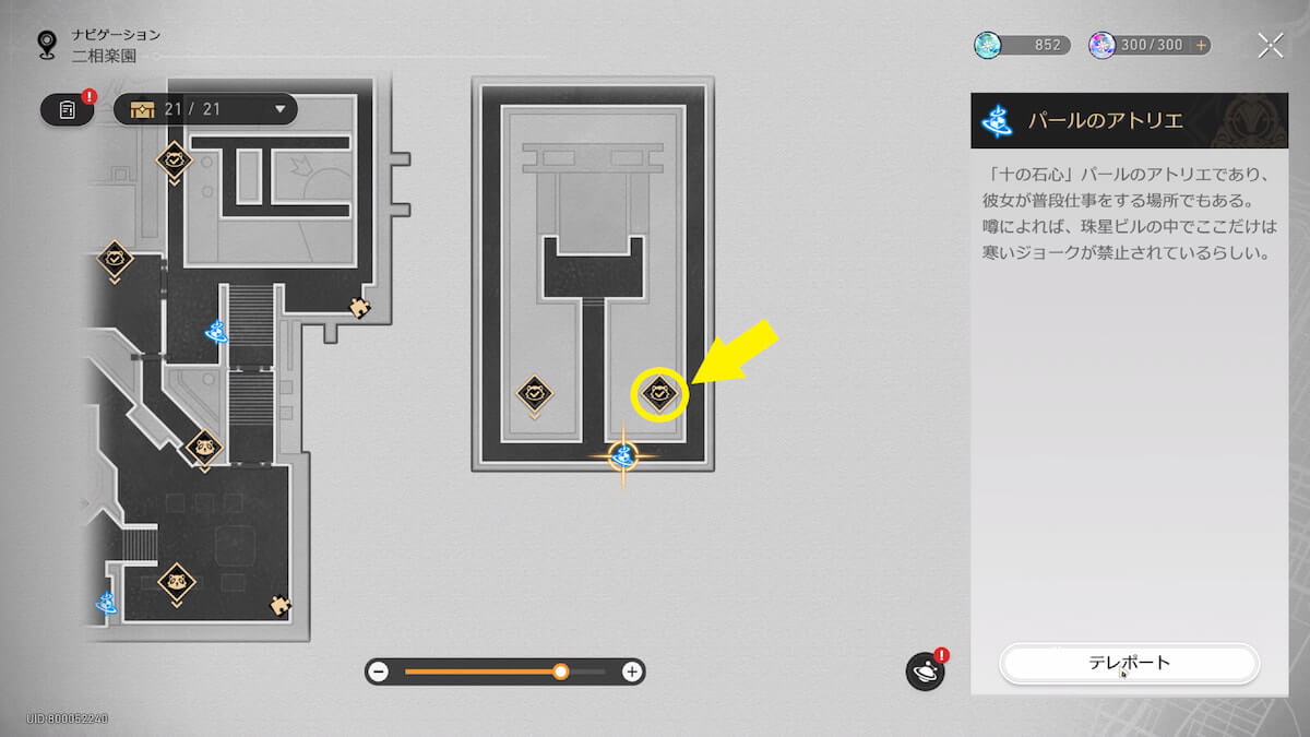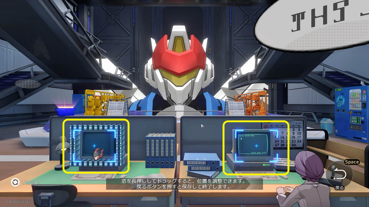 隠しエリアに移動したら、上の足場にある装置を調べて窓を入れ替えると、アチーブメントを獲得できます。