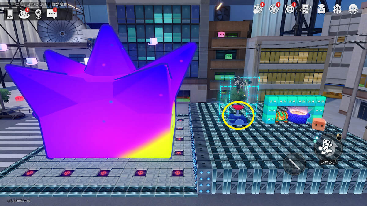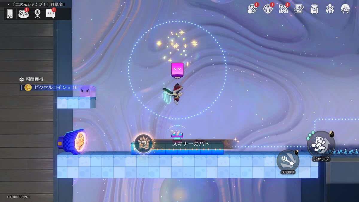 画像〇の「二次元ジャンプ!」に入り、出口前のボタンを踏んで脱出すると、アチーブメントを獲得できます。