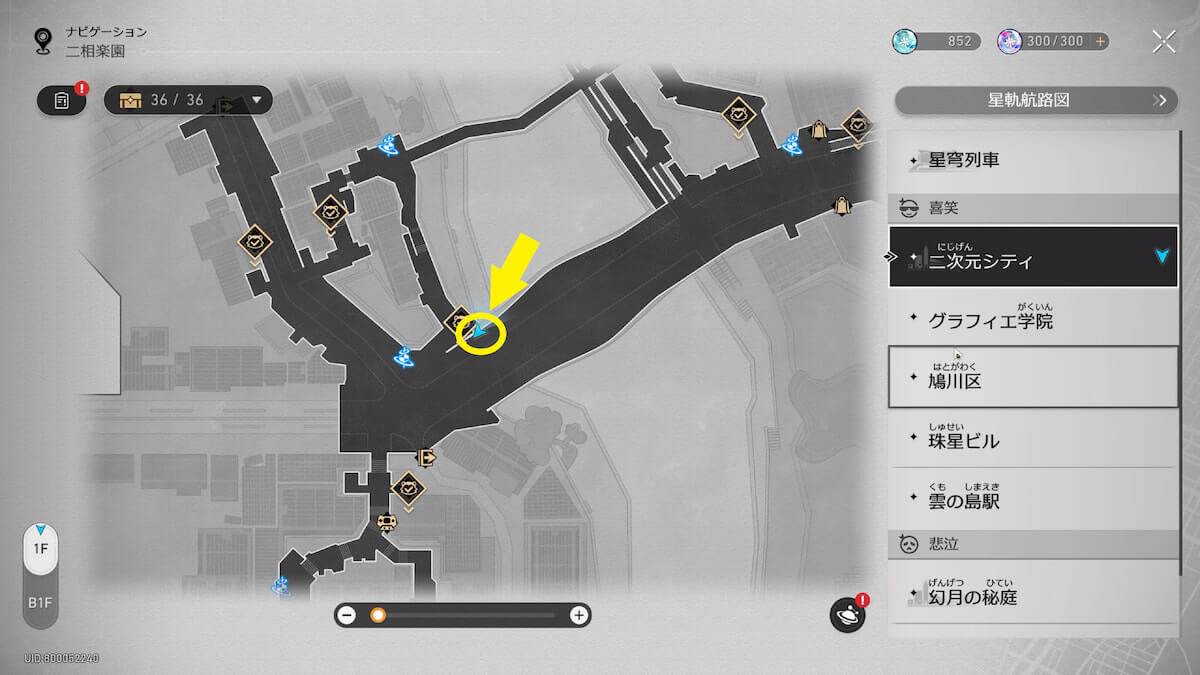 「雲の島駅」にある任意の「二次元ジャンプ!」に入ります。