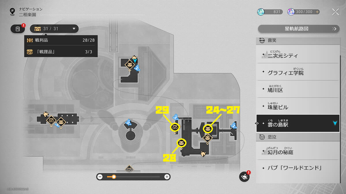 今回は二相楽園の「雲の島駅」にある戦利品28個と戦狸品3匹の場所についてまとめていきます。崩壊スターレイルを攻略している方は是非参考にしてみてください。