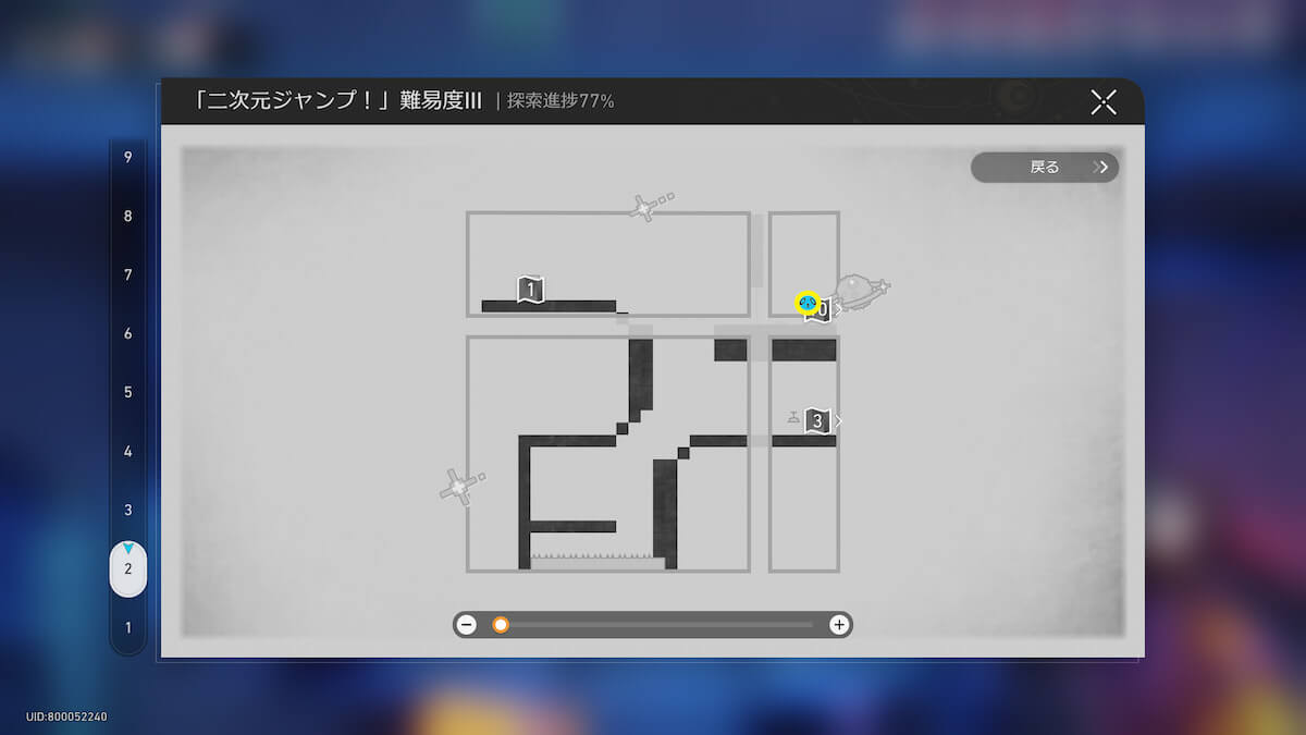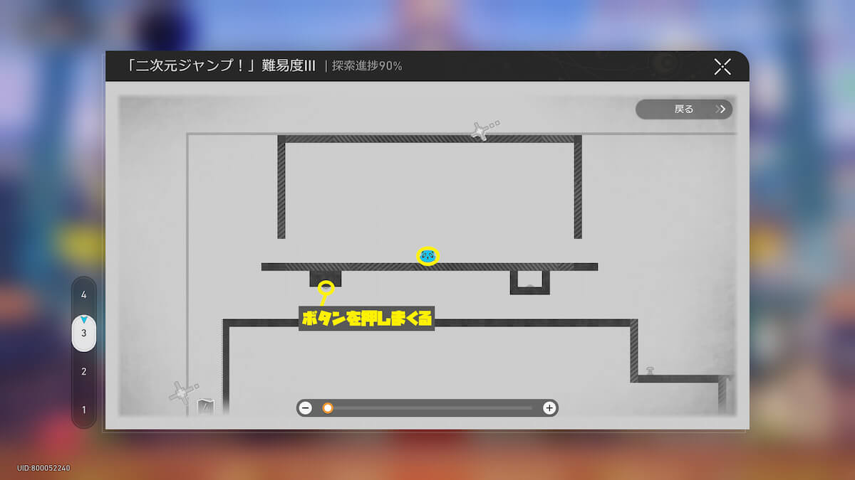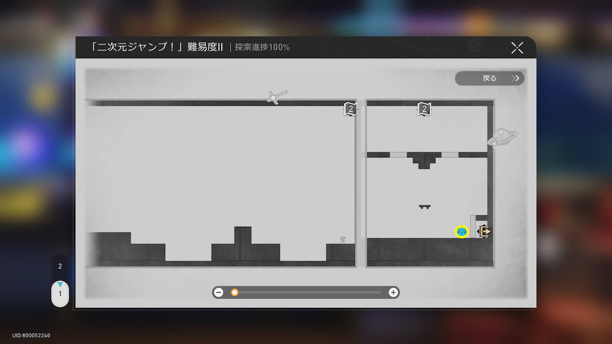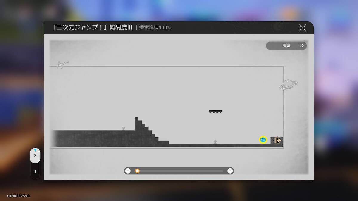 マップ画像19-21番の「二次元ジャンプ!」に入ります。