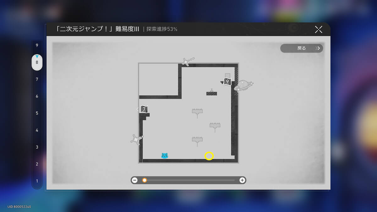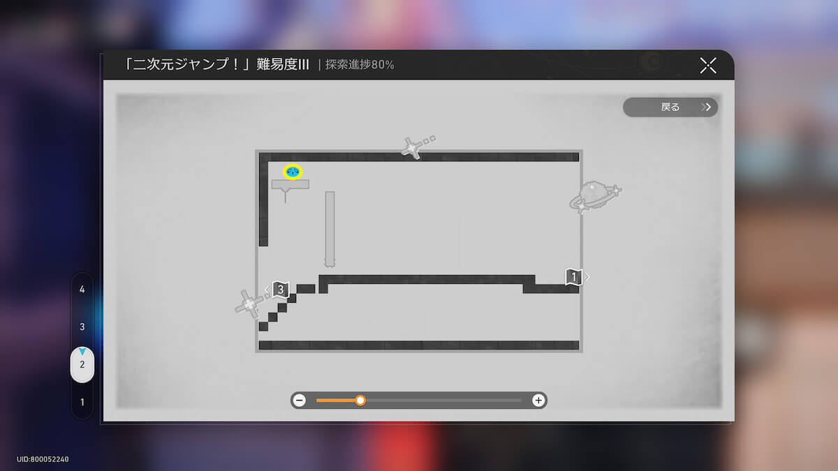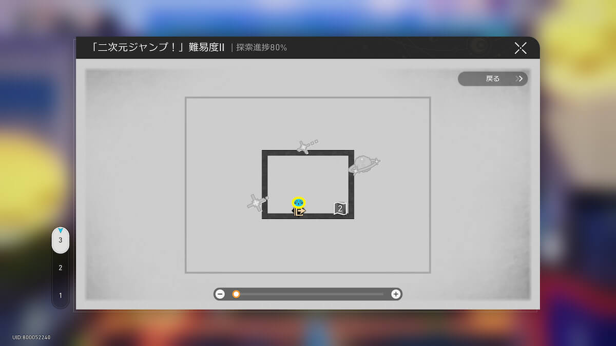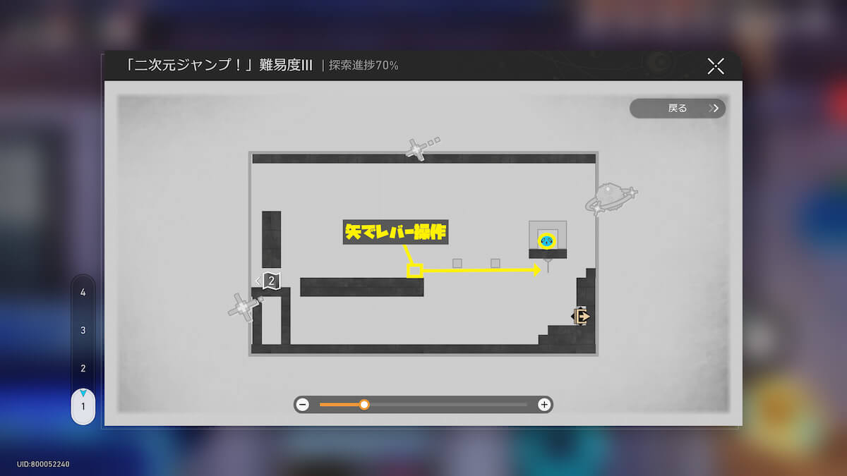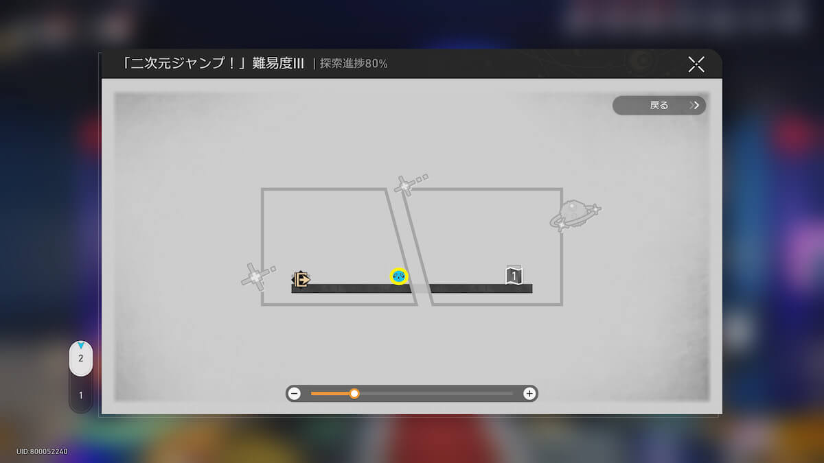 マップ画像19-21番の「二次元ジャンプ!」に入ります。