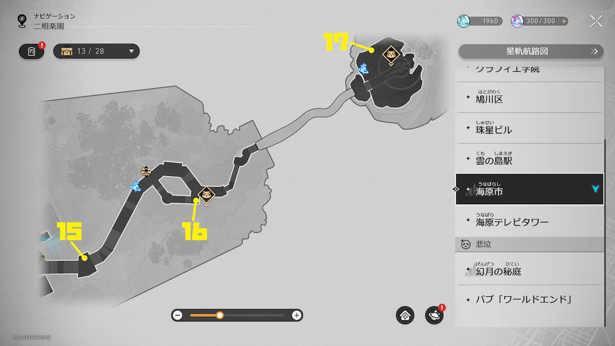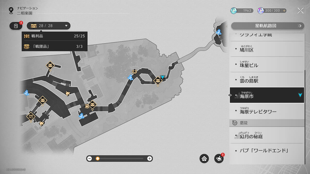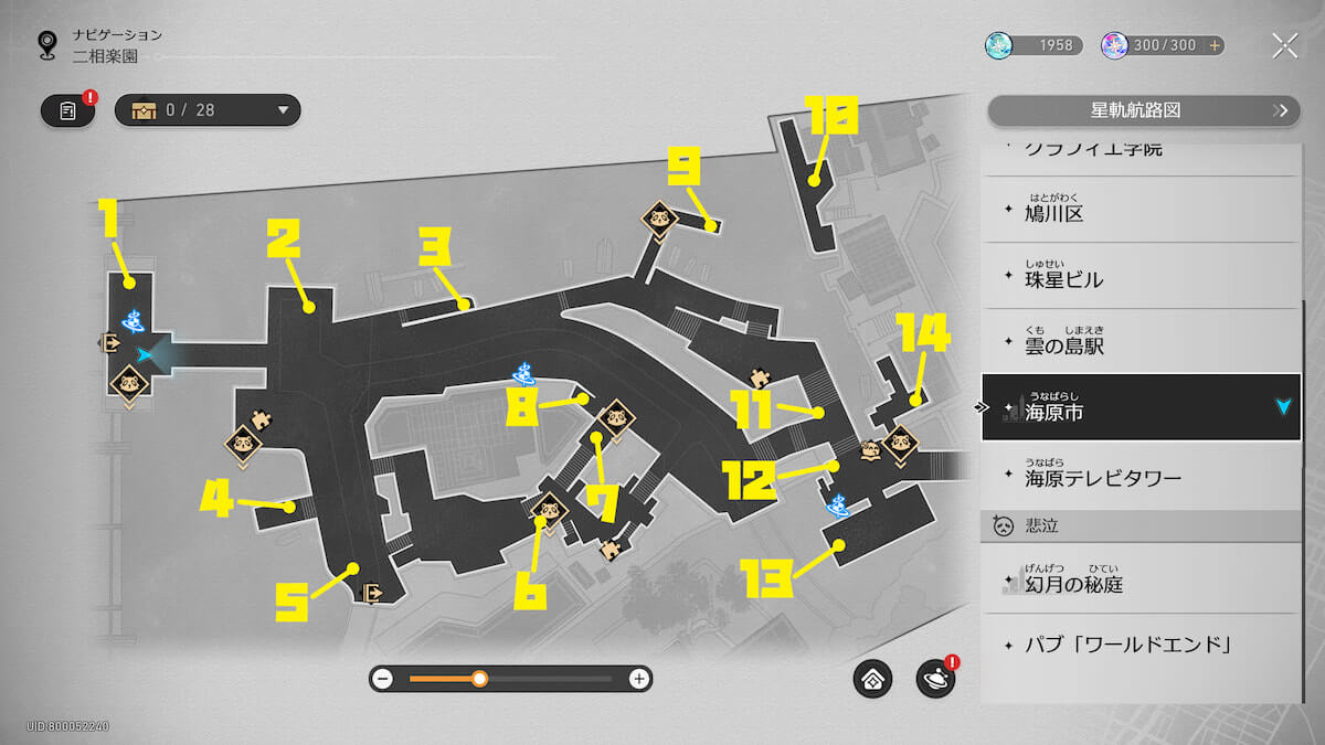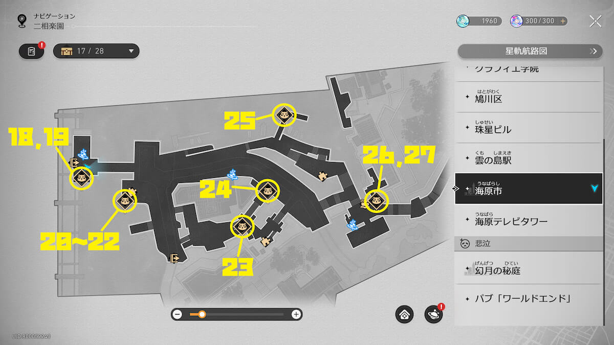 以上が【崩壊スターレイル】「海原市」戦利品25個と戦狸品3匹の場所まとめ【二相楽園】になります。
