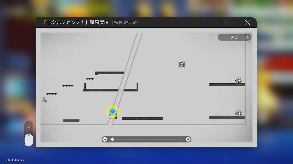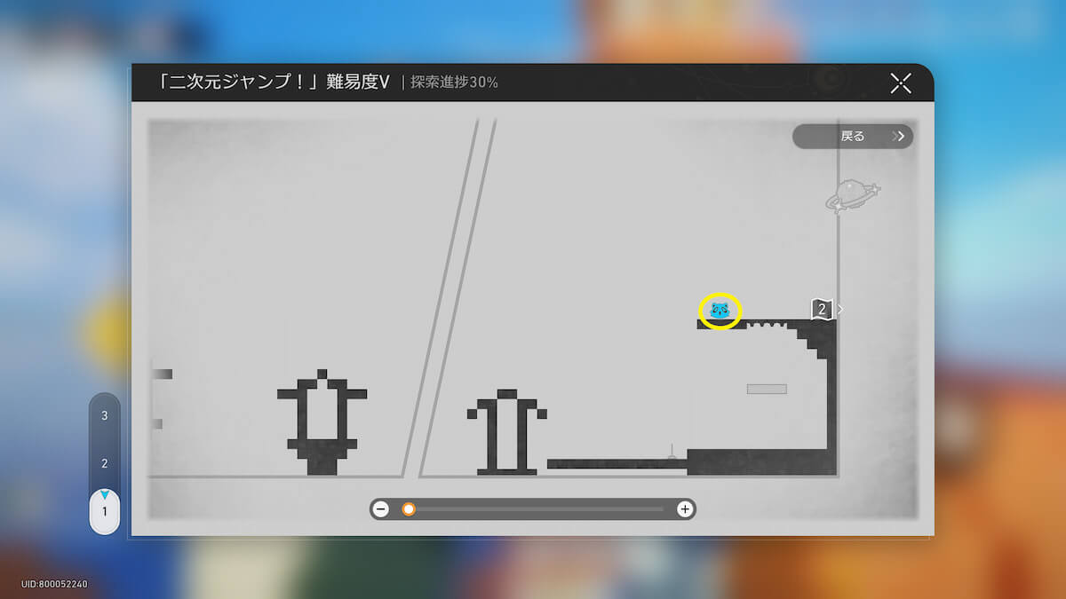 マップ画像20~22番の「二次元ジャンプ!」に入ります。
