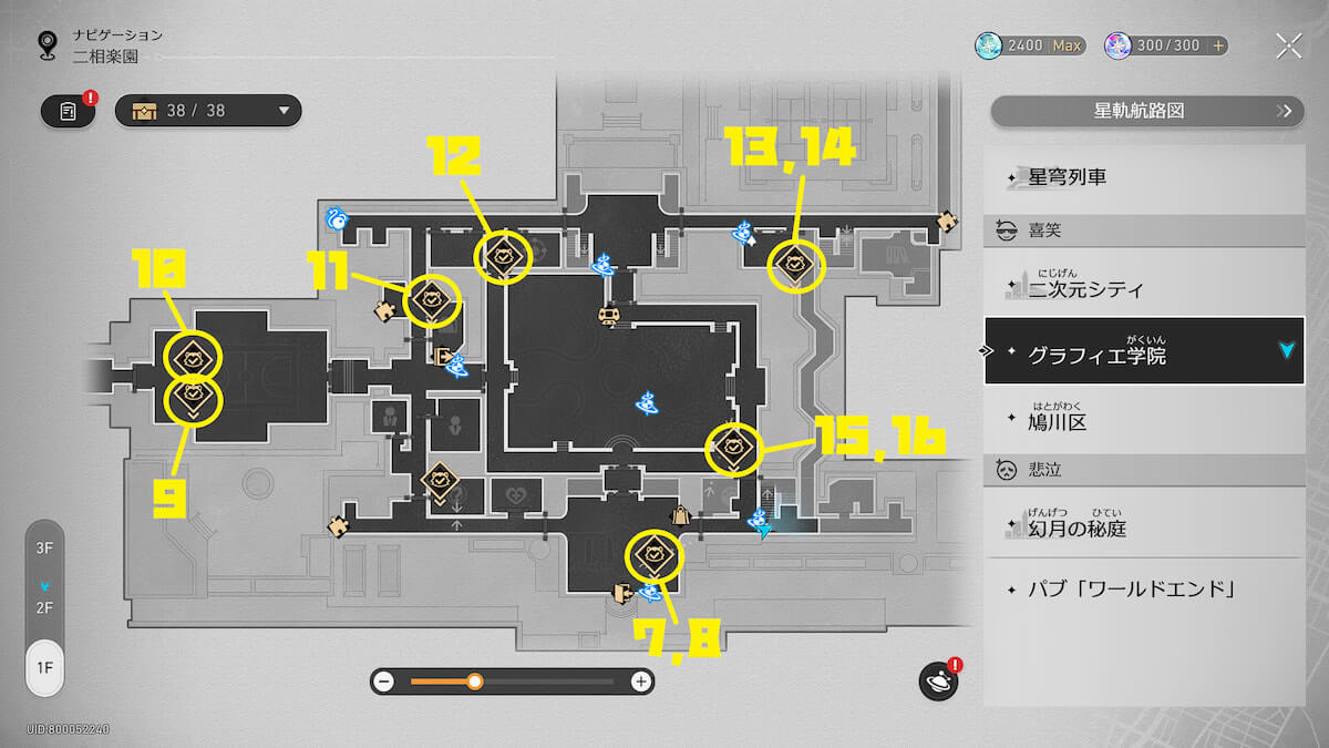 以上が【崩壊スターレイル】「グラフィエ学院」名もなき初20体の場所まとめ【二相楽園】になります。