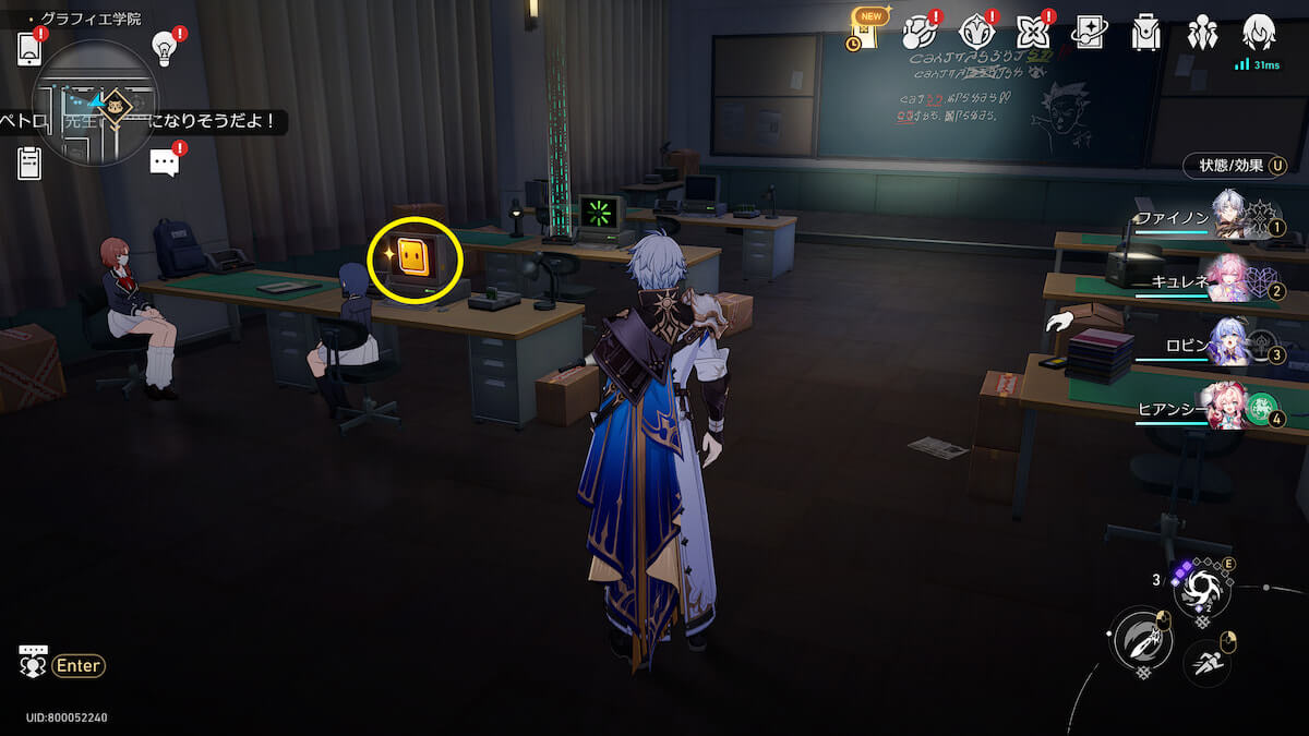 マップ画像2番の位置。マンガ調の教室で、名もなき初を発見できます。