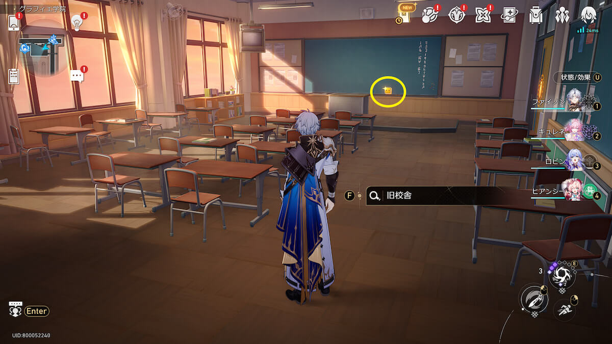 マップ画像6番の位置。旧校舎の教室で、名もなき初を発見できます。