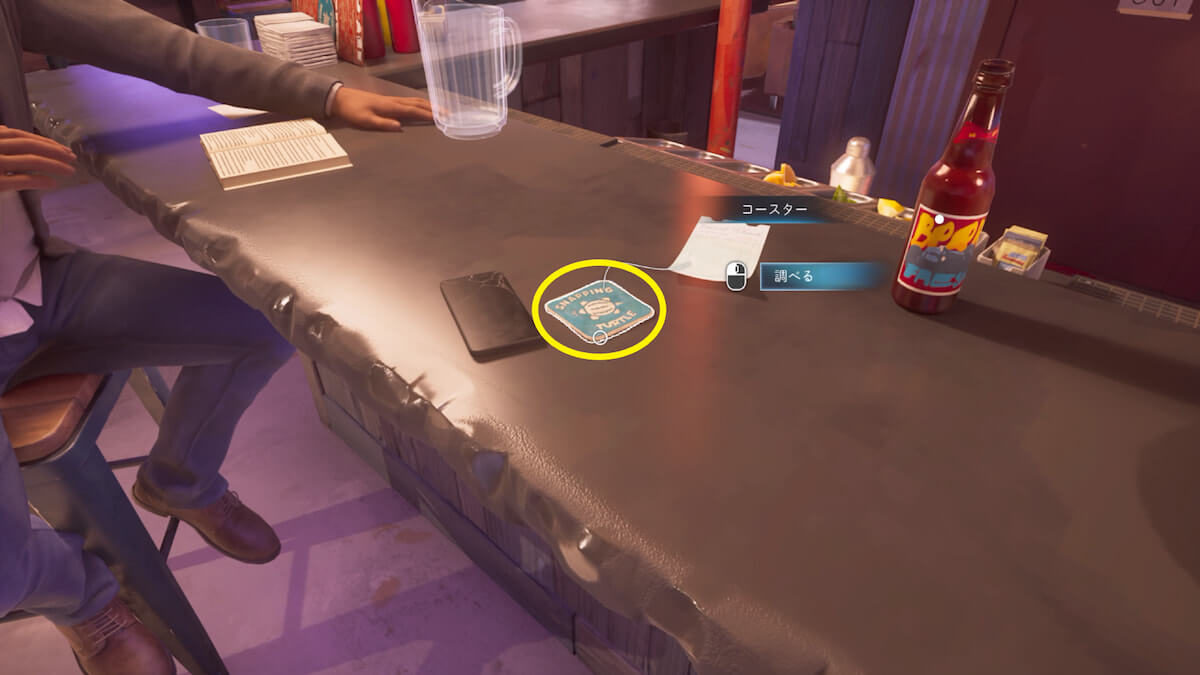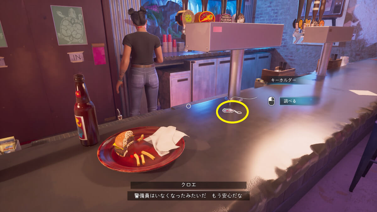 カウンターにあるキーホルダーを調べると、アイテム「キーホルダー」を入手できます。
