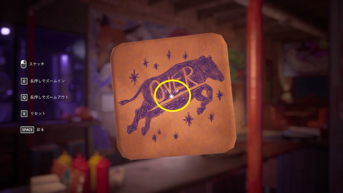 目の前にあるコースターを調べて裏面をスケッチすると、スケッチ「コースターにインスパイア!」を入手できます。